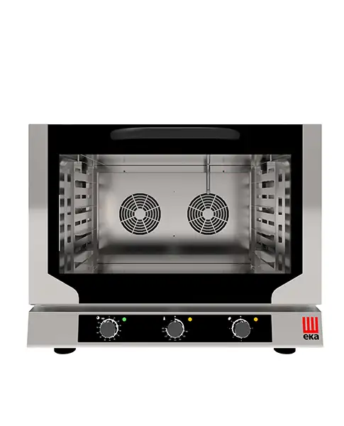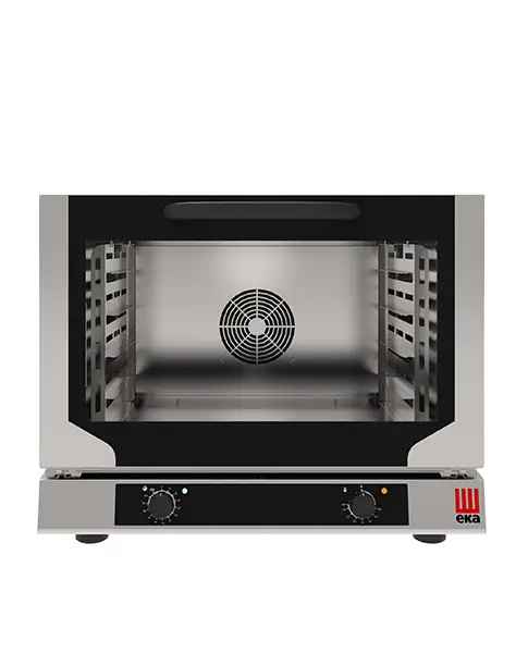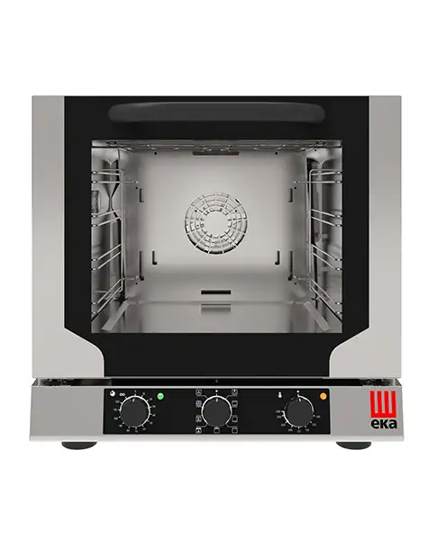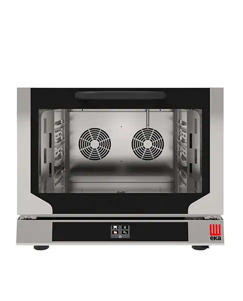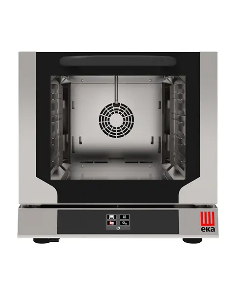 Cuptor electric cu convecție cu sistem de abur indirect pentru coacerea profesională. Cuptor cu convecție compact, ideal pentru baruri, brutării, catering și bucătării mici.
