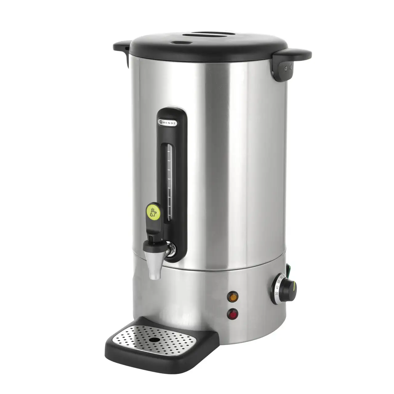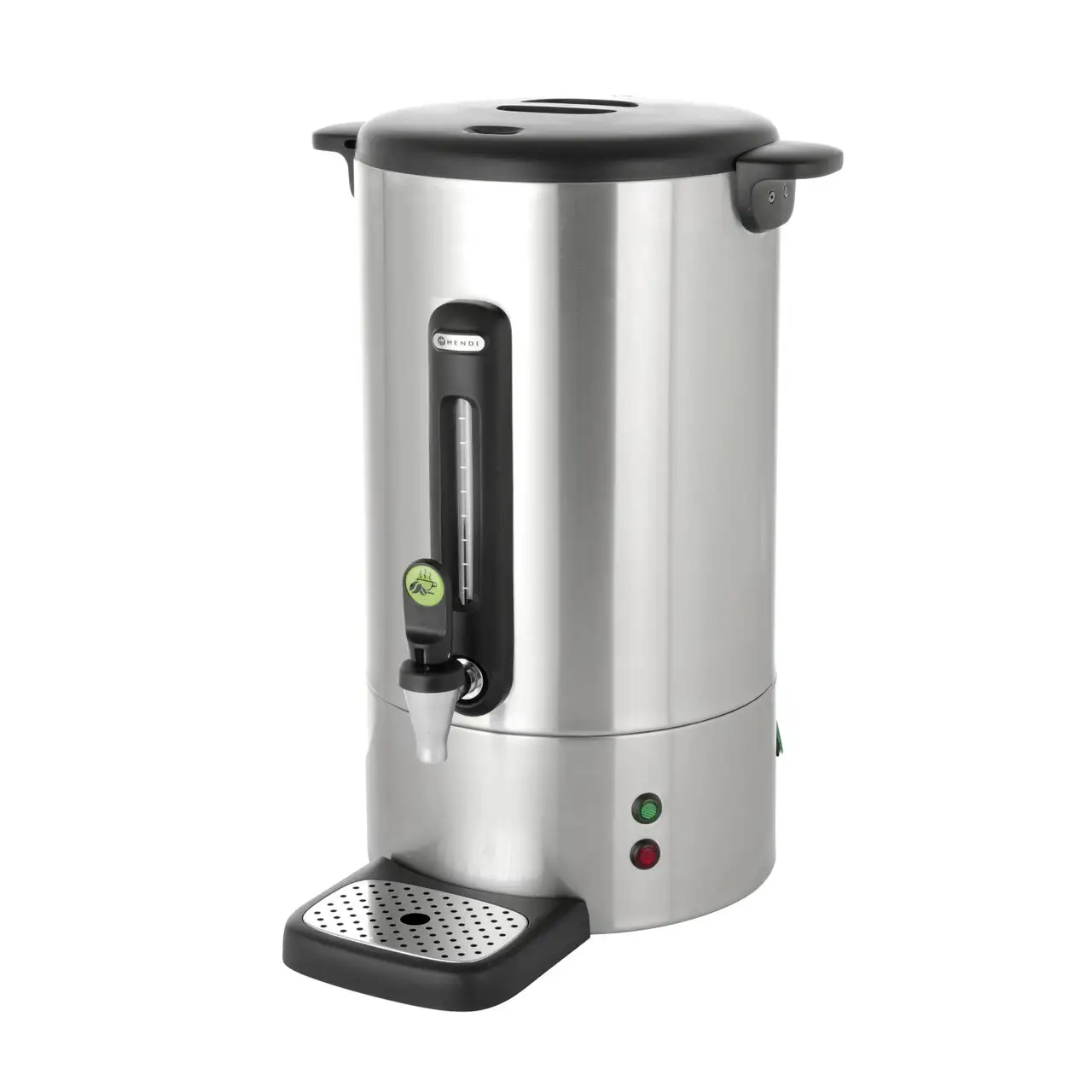Dispenser electric pentru băuturi calde HENDI UNIQ este realizat cu precizie și stil – se remarcă pe orice bufet prin finisajul său mat, negru. Echipat cu caracteristici practice, cum ar fi robinetul fără picurare, indicatorul nivelului apei și menținerea automată a căldurii, asigură un serviciu de cafea lin în fiecare preparare. Beneficii: Carcasă din oțel inoxidabil durabil. Robinet fără picurare pentru turnare ușoară și curată. Menținerea automată a căldurii după preparare – cafeaua este întotdeauna gata de servire. Lămpi indicator care asigură utilizare ușoară.