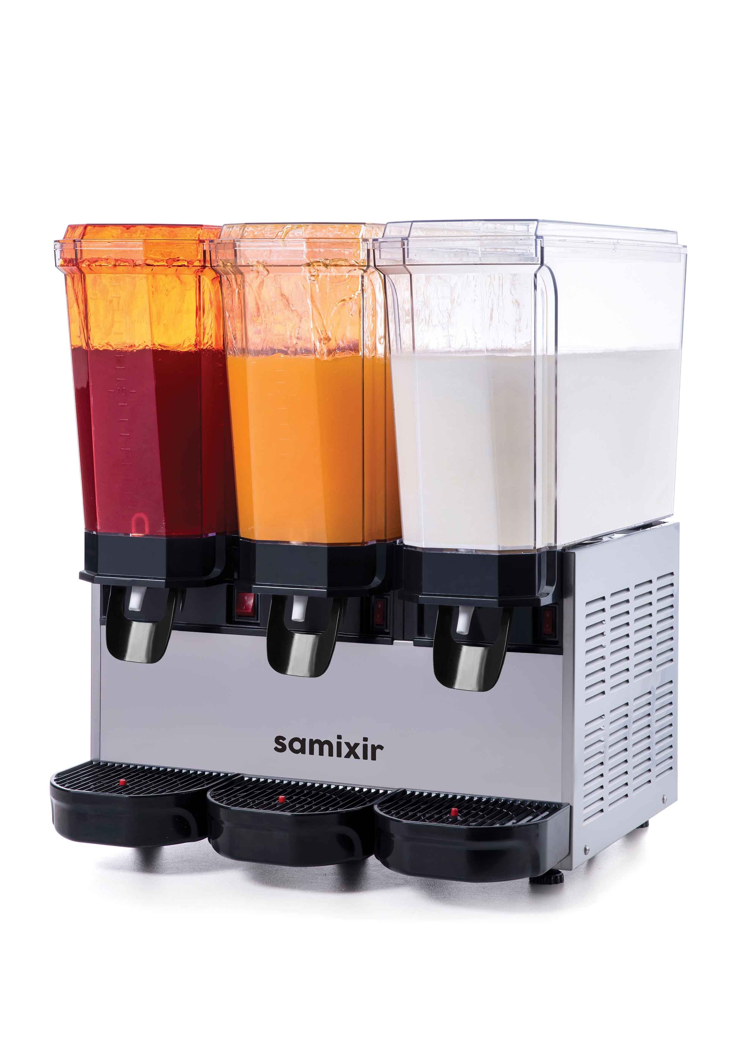 Dispenser de băuturi reci de tip counter top cu sistem de mixer, destinat sucurilor cu pulpă, cafelei reci, ceaiului rece și altor băuturi reci. Sistemul de agitare lentă asigură amestec uniform și răcire rapidă.