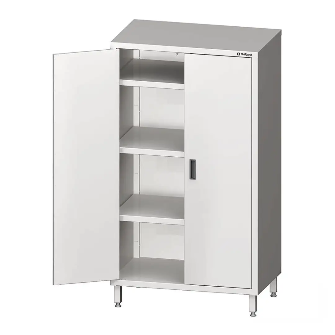 Dulap de depozitare din inox STALGAST, realizat din oțel inoxidabil alimentar, destinat bucătăriilor profesionale horeca. Dulap inox profesional cu ușă batantă, potrivit pentru restaurante, hoteluri, cantine și bucătării industriale.