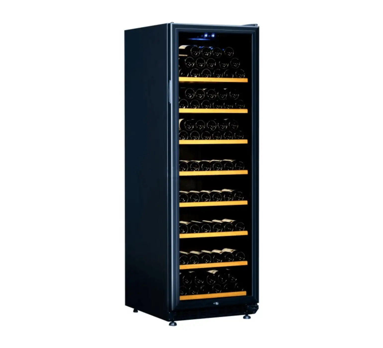 Frigider pentru vin cu compresor eficient energetic și nivel redus de zgomot, care asigură condiții optime pentru păstrarea vinurilor și băuturilor. Ușa din sticlă rezistentă permite control vizual asupra stării sticlelor fără a le deschide. Design modern și dimensiuni compacte economisesc spațiu, iar regimul stabil de temperatură și sistemul eficient de ventilație păstrează calitatea și aroma diverselor tipuri de vin. Economisirea energiei și funcționarea silențioasă fac acest frigider de vin o alegere ideală pentru casă și birou.