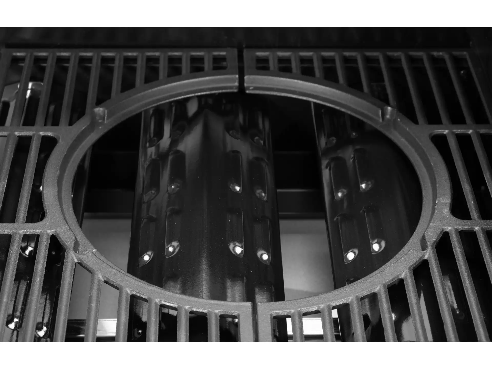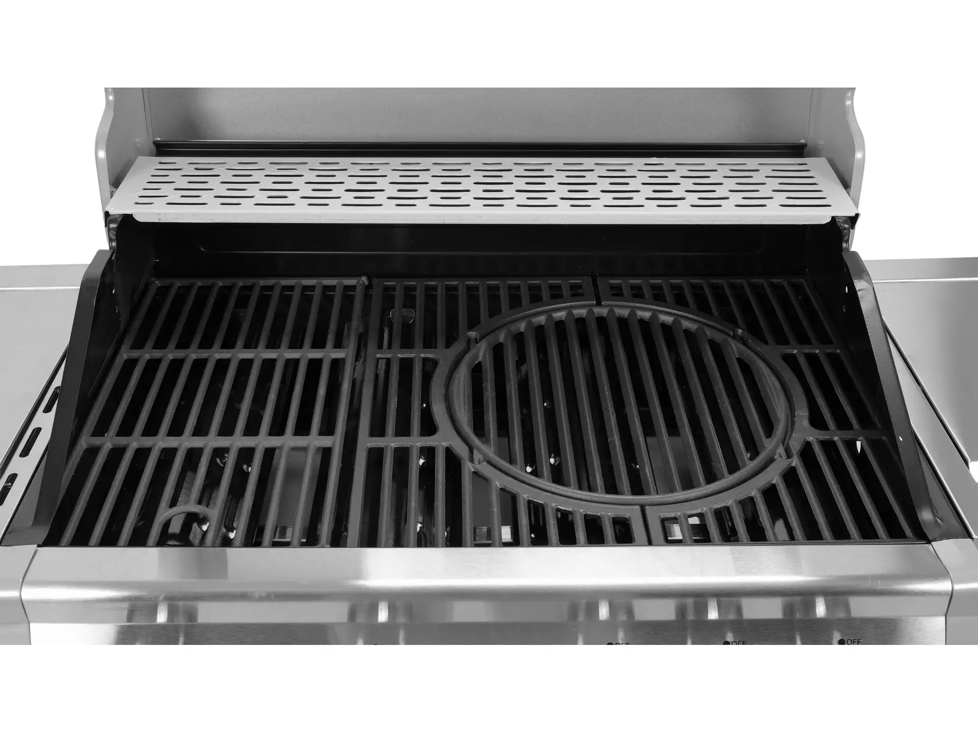 Grătarul pe gaz YATO are dimensiunile de 1410x550x1130 mm este fabricat din oțel inoxidabil 430 și oțel inoxidabil are un design portabil și funcționează pe gaz dispune de cinci arzătoare (patru principale și unul suplimentar) cu o putere totală de 14,2 kW (4x3 + 2,2 kW) consumul de gaz este de 1032 g/h utilizează butan G30 sau propan G31 la o presiune de 37 mbar grătarul are o formă dreptunghiulară și vine în culoarea argintie are o masă de 41,5 kg este echipat cu patru roți, toate cu frână, pentru o mobilitate ușoară dispune de un raft cu dimensiunile de 345x425 mm, iluminare de fundal cu LED și șase cârlige nu are mâner lateral grătarul este fabricat din fontă și are dimensiunea de 700x420 mm (două de 225x410 mm și unul de 220x415 mm, cu un diametru de 300 mm) nu are reglarea înălțimii grătarului, cenușar sau obloane de control al circulației aerului include capac, termometru, grilă de încălzire cu dimensiunea de 675x120 mm, aprindere în buton și tavă de grăsime detașabilă are trei grătare dimensiunea sticlei este de 645x130 mm dimensiunile recipientului pentru alimente sunt de 265x325x95 mm