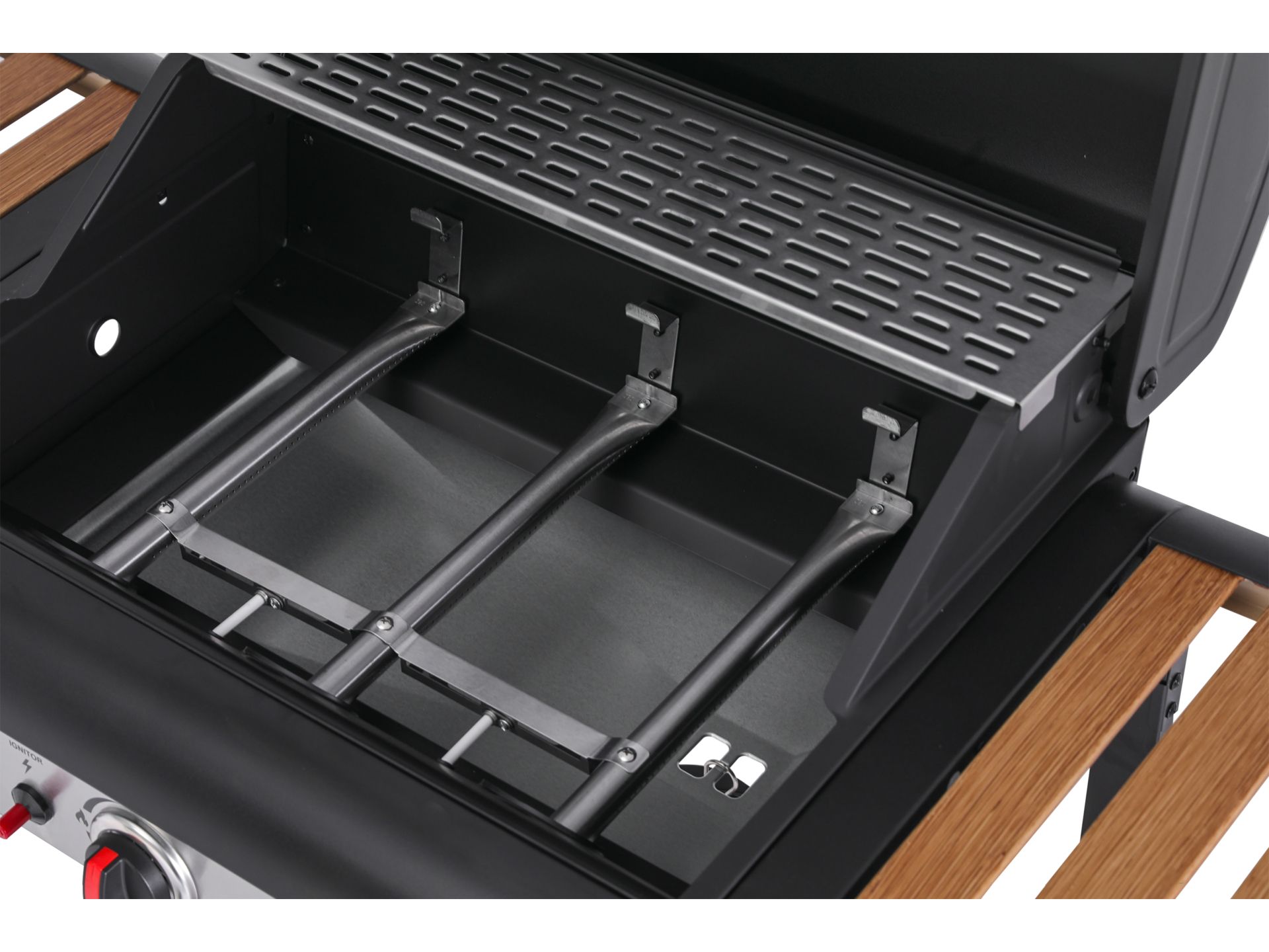 Grătarul pe gaz YATO Natori cu o putere de 9 kW este ideal pentru prepararea alimentelor în aer liber. Fabricat din oțel rezistent, acoperit cu pulbere, oferă durabilitate și protecție împotriva coroziunii. Designul portabil include două roți din PVC pentru o manevrare ușoară. Funcționează cu butan G30 și propan G31 la o presiune de 37 mbar, având un consum de gaz de aproximativ 654 g/h. Dispune de 3 arzătoare principale, oferind o distribuție uniformă a căldurii. Suprafața de gătit este formată dintr-un grătar mare din oțel emailat, cu dimensiunea totală de 600x420 mm. Este echipat cu un termometru integrat, o grilă de încălzire de 570x120 mm și o tavă de grăsime detașabilă pentru curățare ușoară. Grătarul include rafturi laterale pentru organizare, cinci cârlige pentru accesorii și un spațiu generos pentru depozitare.
