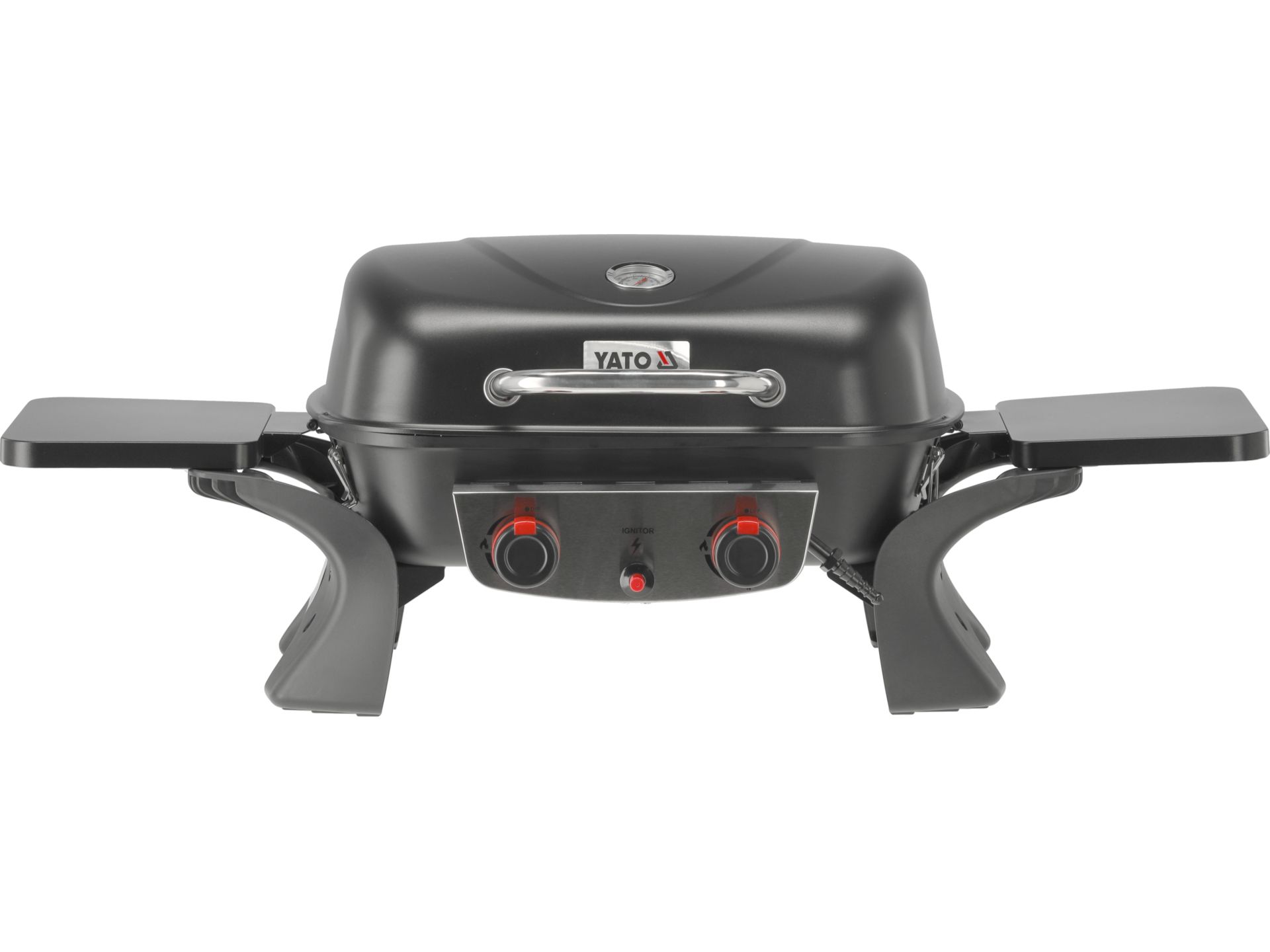 Grătarul pe gaz pliabil YATO Yake este un dispozitiv portabil, ideal pentru activități în aer liber, având dimensiunile de 965x465x350 mm și o greutate de 8,6 kg este fabricat din oțel acoperit cu pulbere pentru durabilitate și rezistență la coroziune echipat cu două arzătoare principale, fiecare cu o putere de 2,5 kW, oferind o putere totală de 5 kW consumul de gaz este de 364 g/h și funcționează cu butan G30 sau propan G31 la o presiune de 37 mbar grătarul are o suprafață de gătit de 470x370 mm, realizată din oțel emailat, și include un raft lateral de 190x170 mm pentru comoditate suplimentară deși nu dispune de roți, cârlige sau mânere laterale, designul său pliabil facilitează transportul și depozitarea este prevăzut cu un capac cu termometru integrat și o grilă de încălzire de 400x130 mm pentru menținerea preparatelor la temperatura optimă