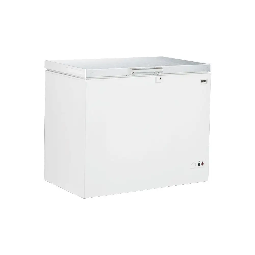 Carcasă vopsită cu pulbere, congelator ladă profesional, capac din oțel inoxidabil cu încuietoare cu cheie, depozitare sigură. Afișaj digital temperatură, control precis al temperaturii, iluminare LED interioară. Congelator ladă cu coș inclus, compartiment pentru organizare, racletă. Sistem de refrigerare +4°C / +6°C, mod de dezghețare -1°C / +1°C. Congelator cu autonomie ridicată, menținere temperatură -19°C până la -9°C fără alimentare electrică până la 39 ore. Sistem de evacuare a apei, congelator profesional pentru depozitare controlată.