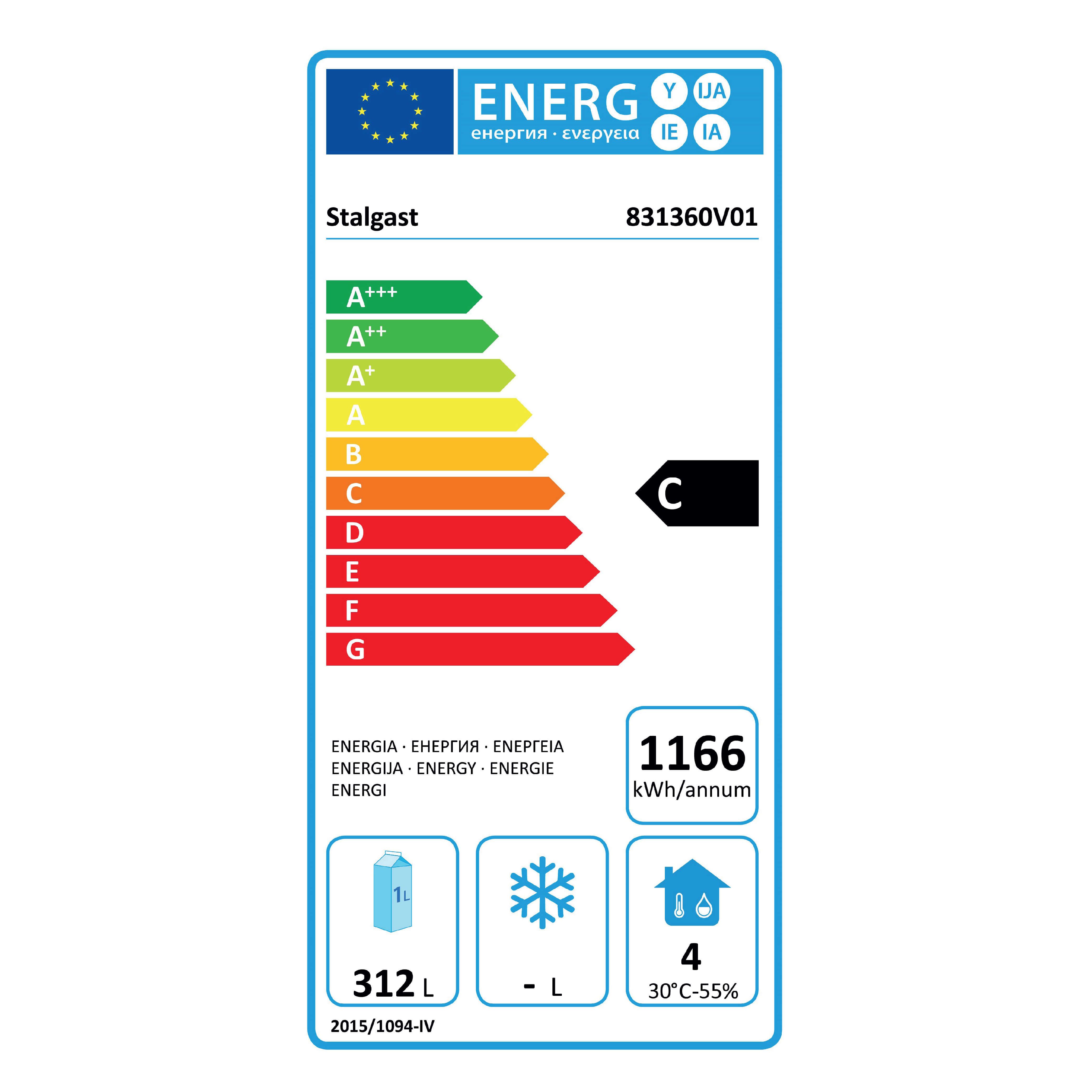 Masă frigorifică cu bordură, 3 uși, V 417 l Stalgast