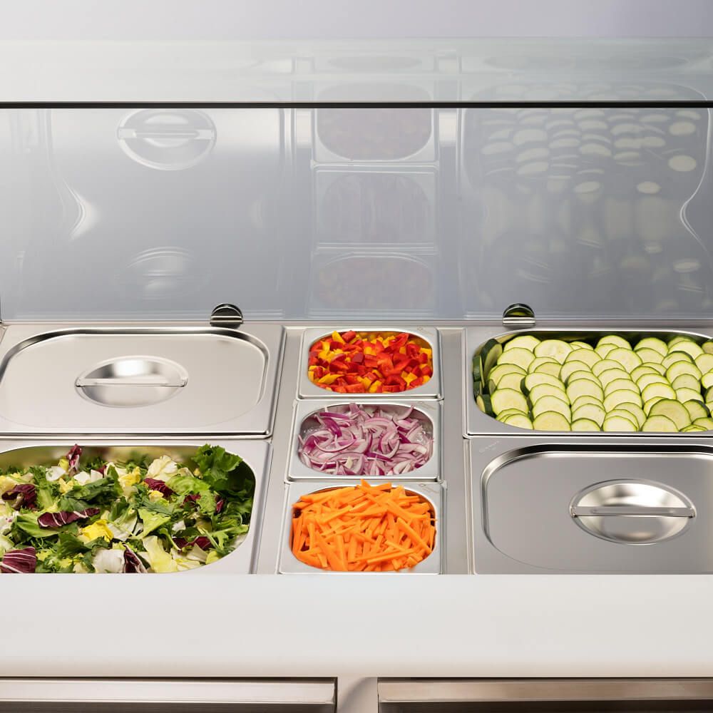 Masă frigorifică pentru salate cu 2 uși cu extensie din sticlă, V 240 l Salgast