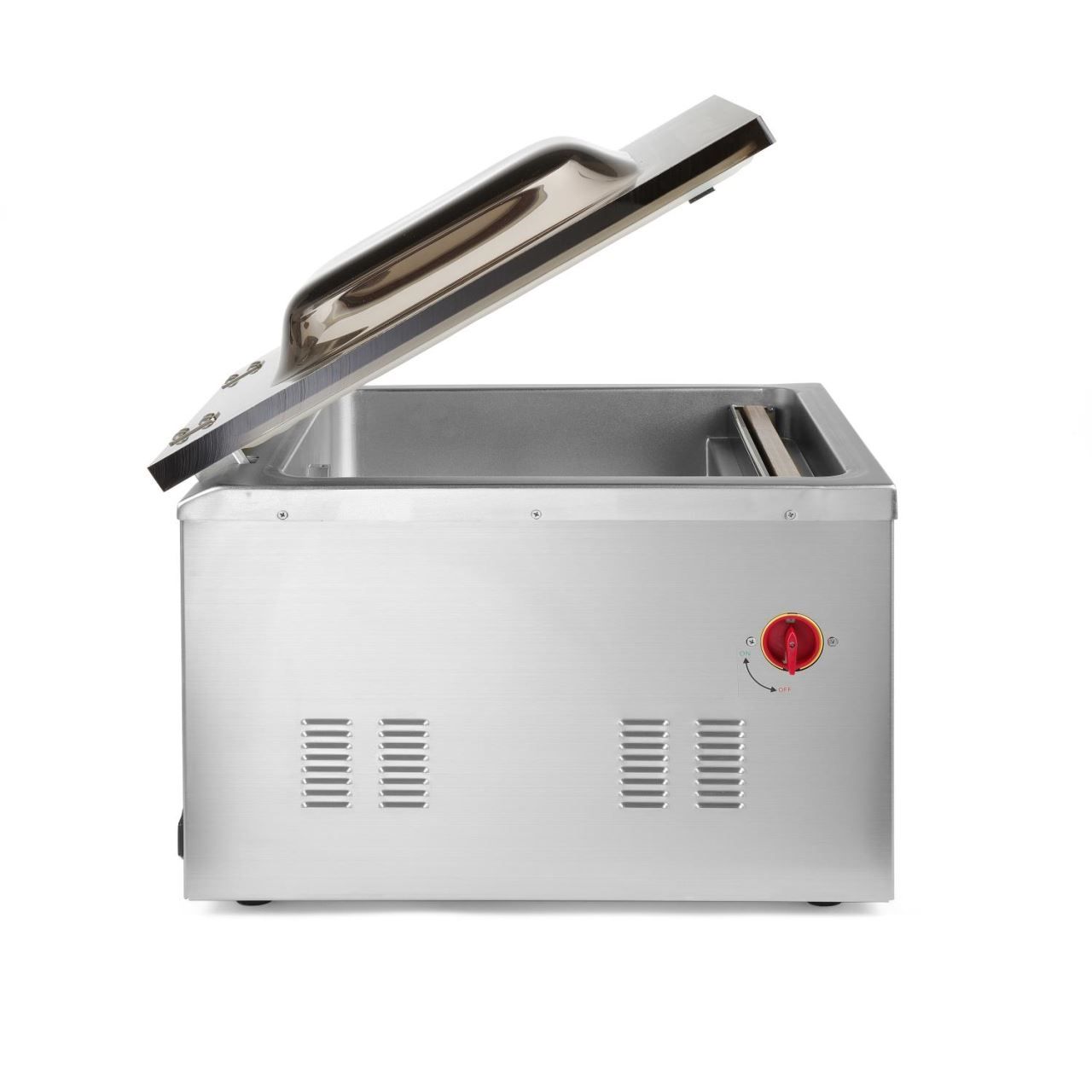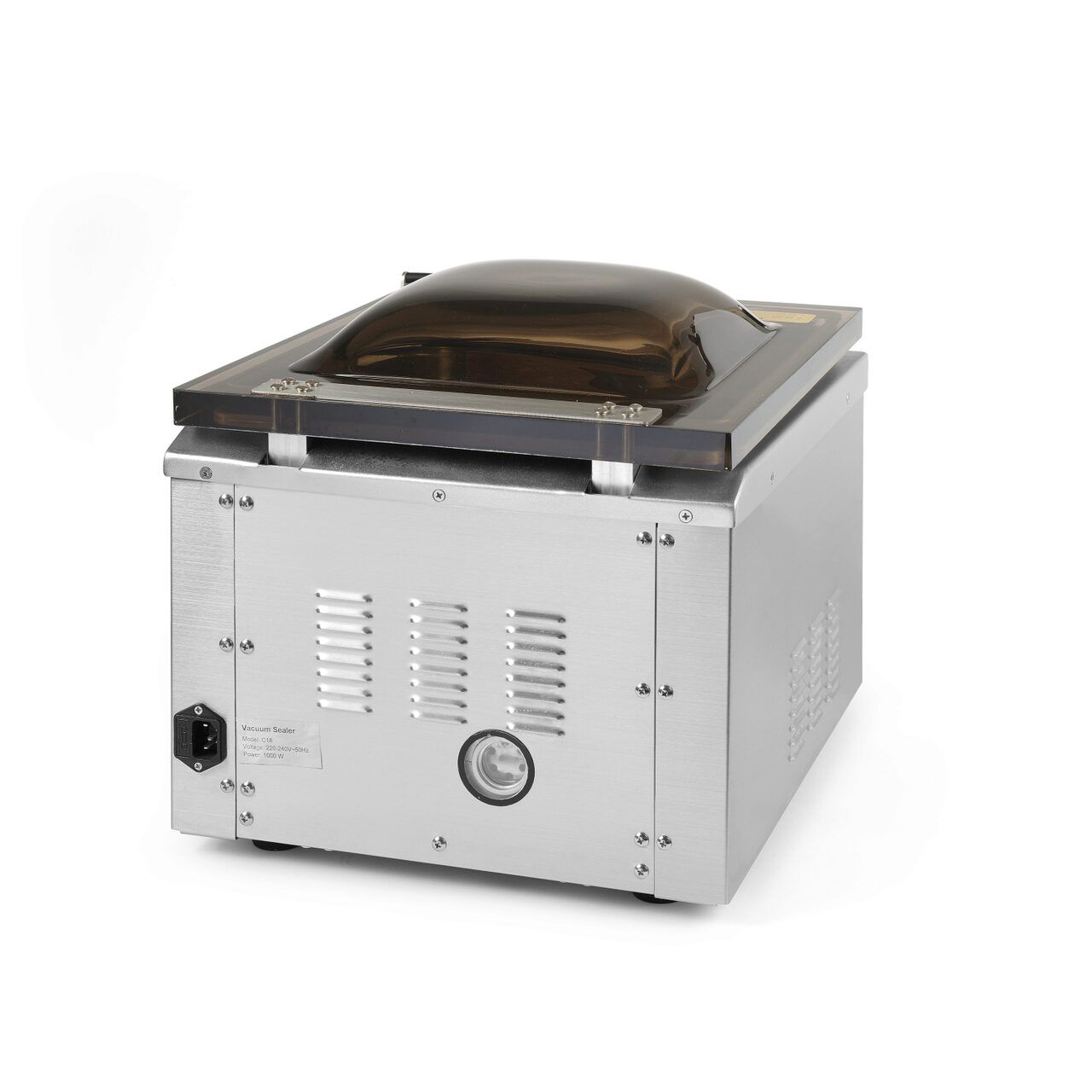 Pentru utilizare profesională în industria de catering și alte industrii Pentru ambalarea alimentelor și produselor tehnice, inclusiv acelea cu un conținut ridicat de apă Design durabil - carcasa și camera sunt fabricate din oțel inoxidabil de calitate superioară AISI 304 Capac transparent din plastic ABS de calitate superioară face posibilă controlarea procesului de ambalare Capac convex permite ambalarea porțiunilor mari Garnitura în formă de V cu o rată scăzută de scurgere
