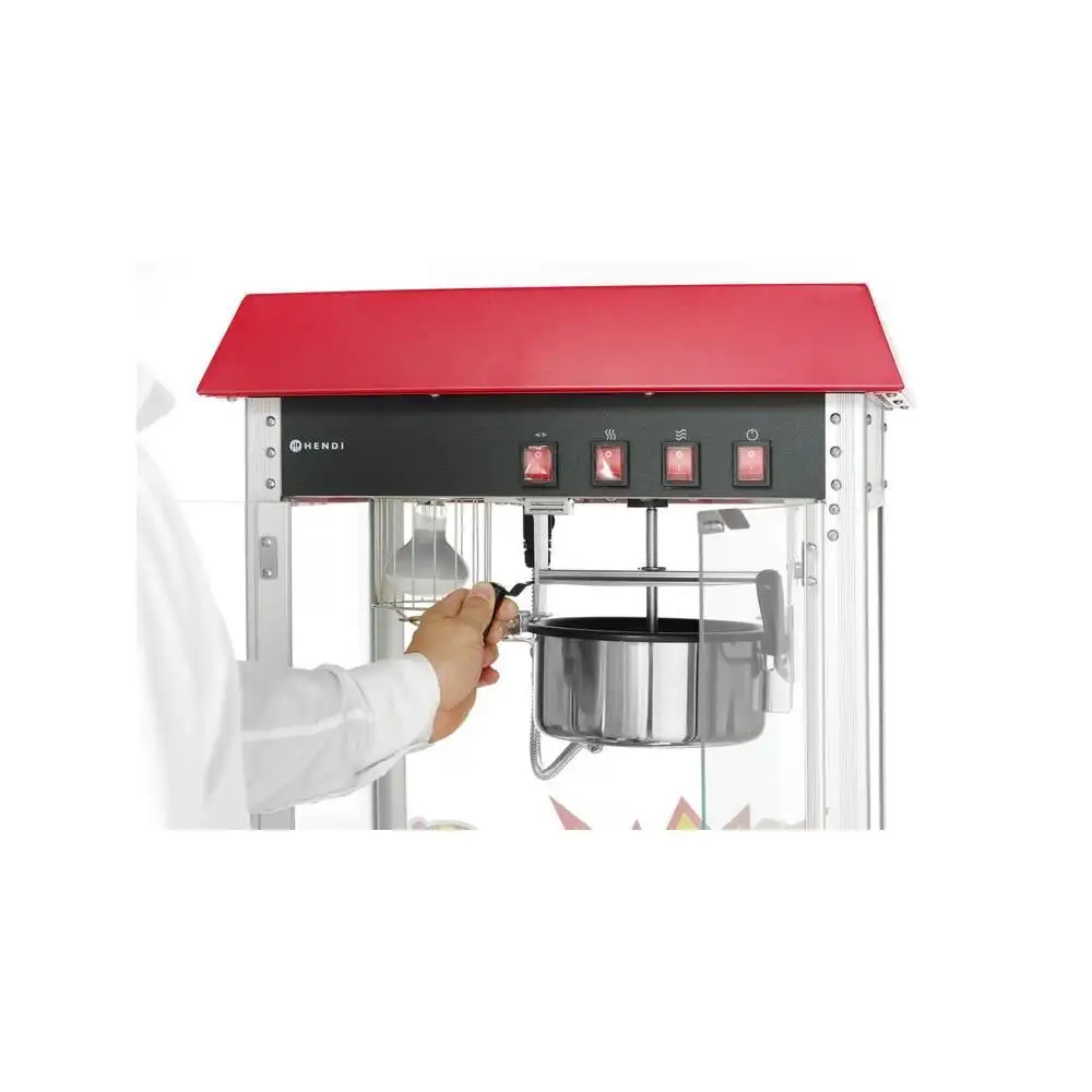 Mașină de popcorn comercială HENDI, aparat profesional de popcorn pentru evenimente și catering. Capacitate 150g boabe de porumb per ciclu, ≈2 minute preparare.
