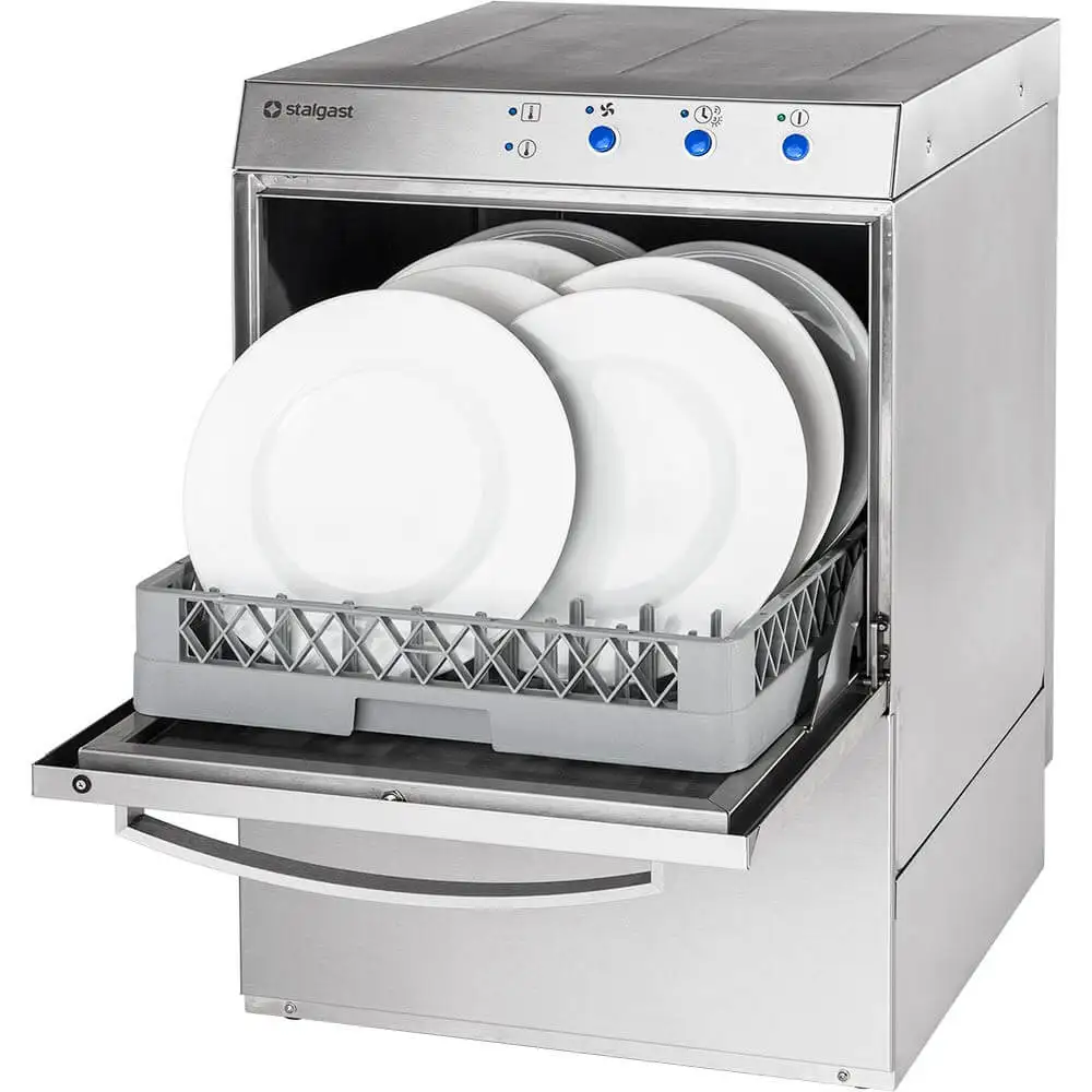 Această mașină de spălat vase profesională, cu un design modern și funcție de abur, este echipată cu controale electromecanice și marcaje clare și durabile pe panoul de control.