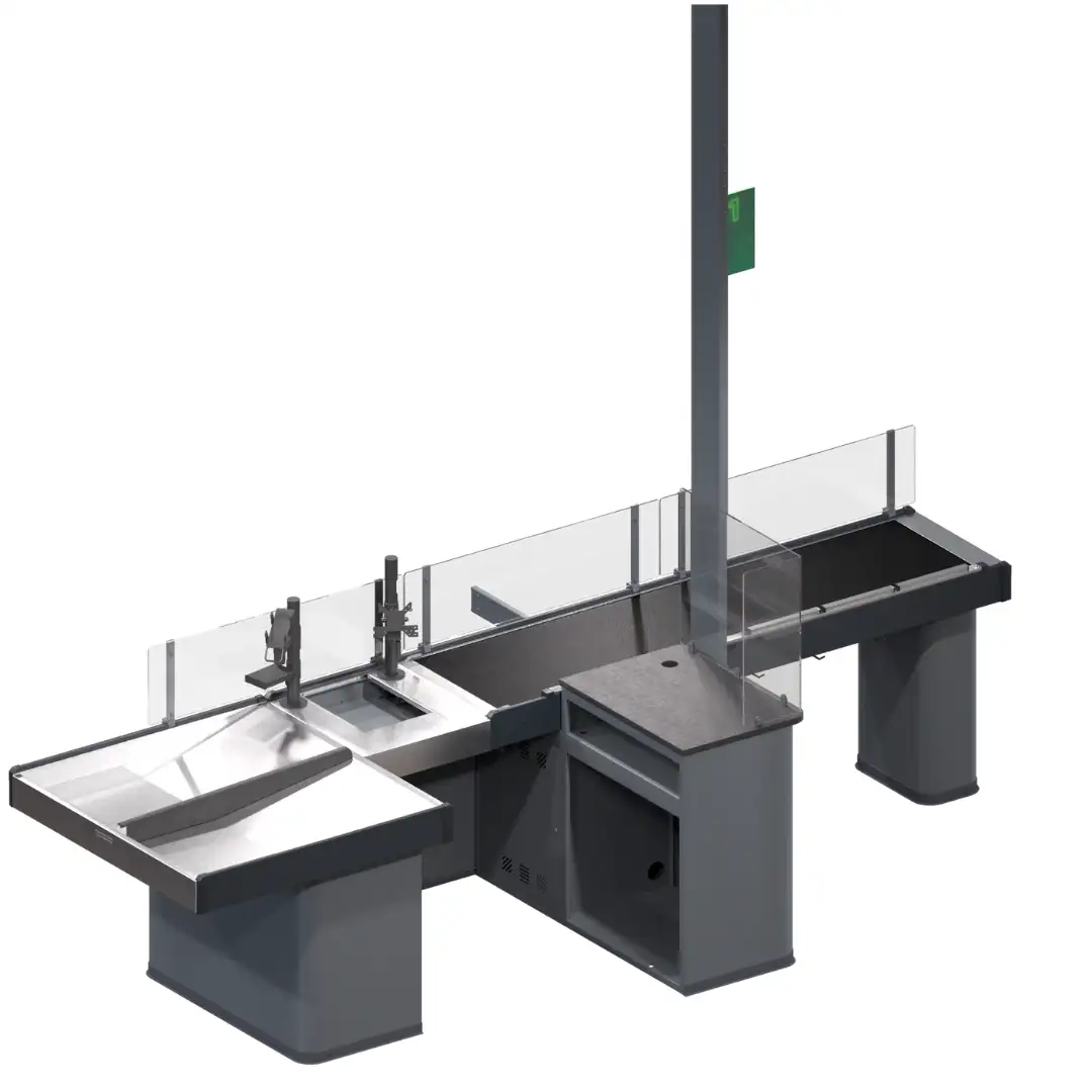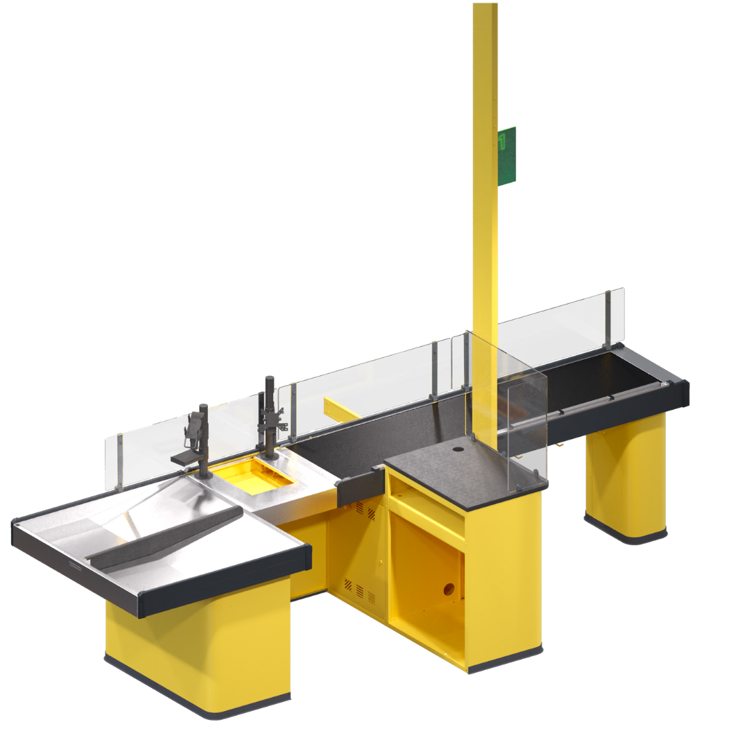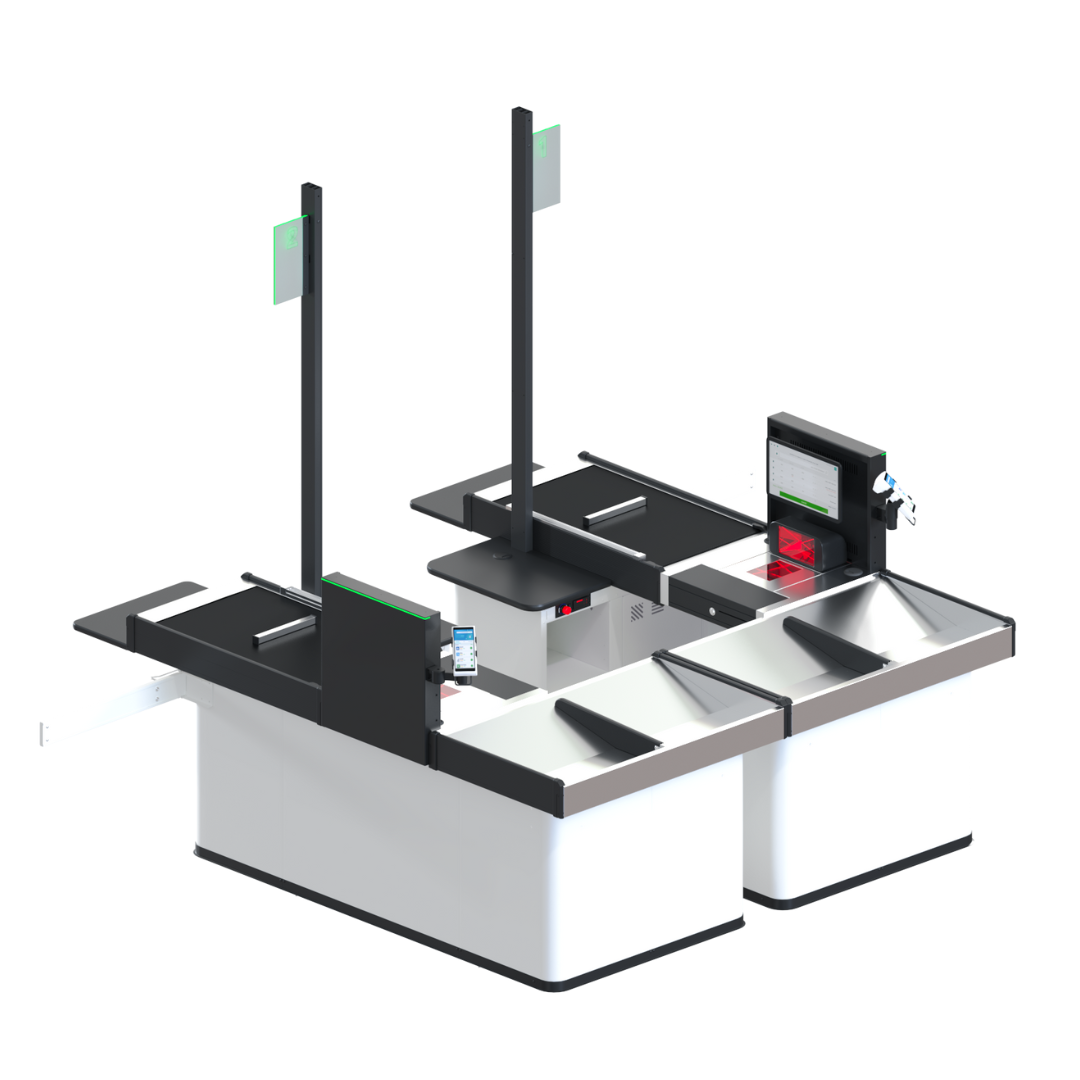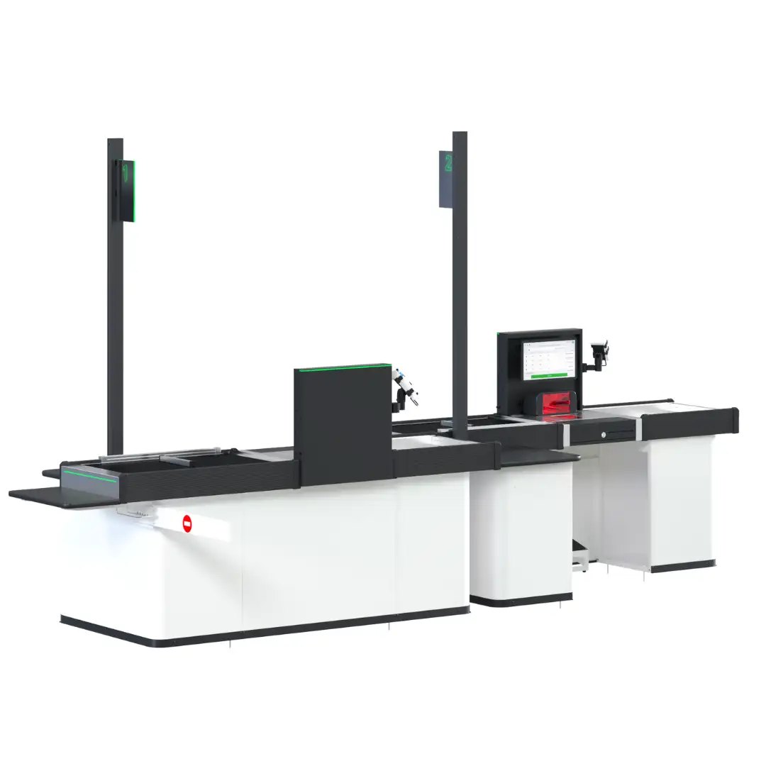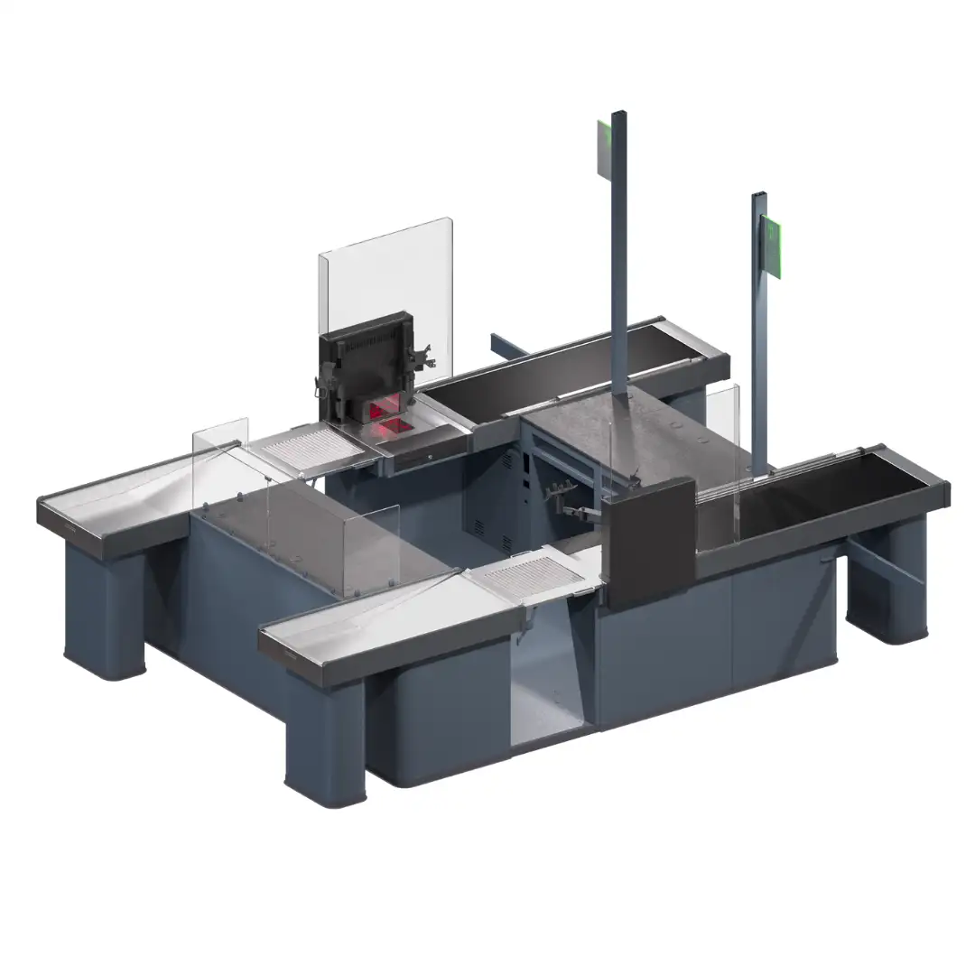 Soluție avansată pentru hipermarketuri și supermarketuri, cu design compact în tandem insular, ce optimizează spațiul în zona de casă. Performanță înaltă pentru gestionarea fluxurilor mari de clienți, asigurând viteze rapide de procesare.