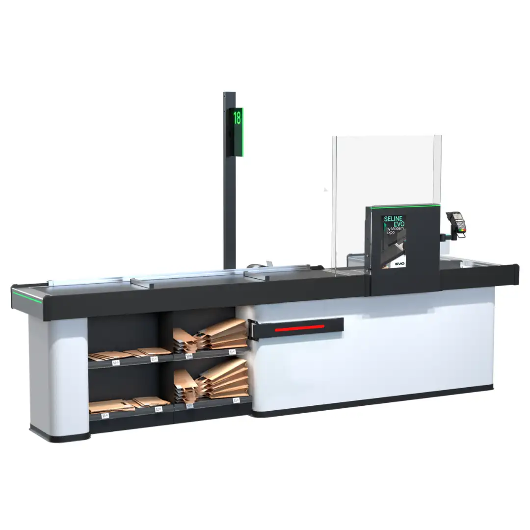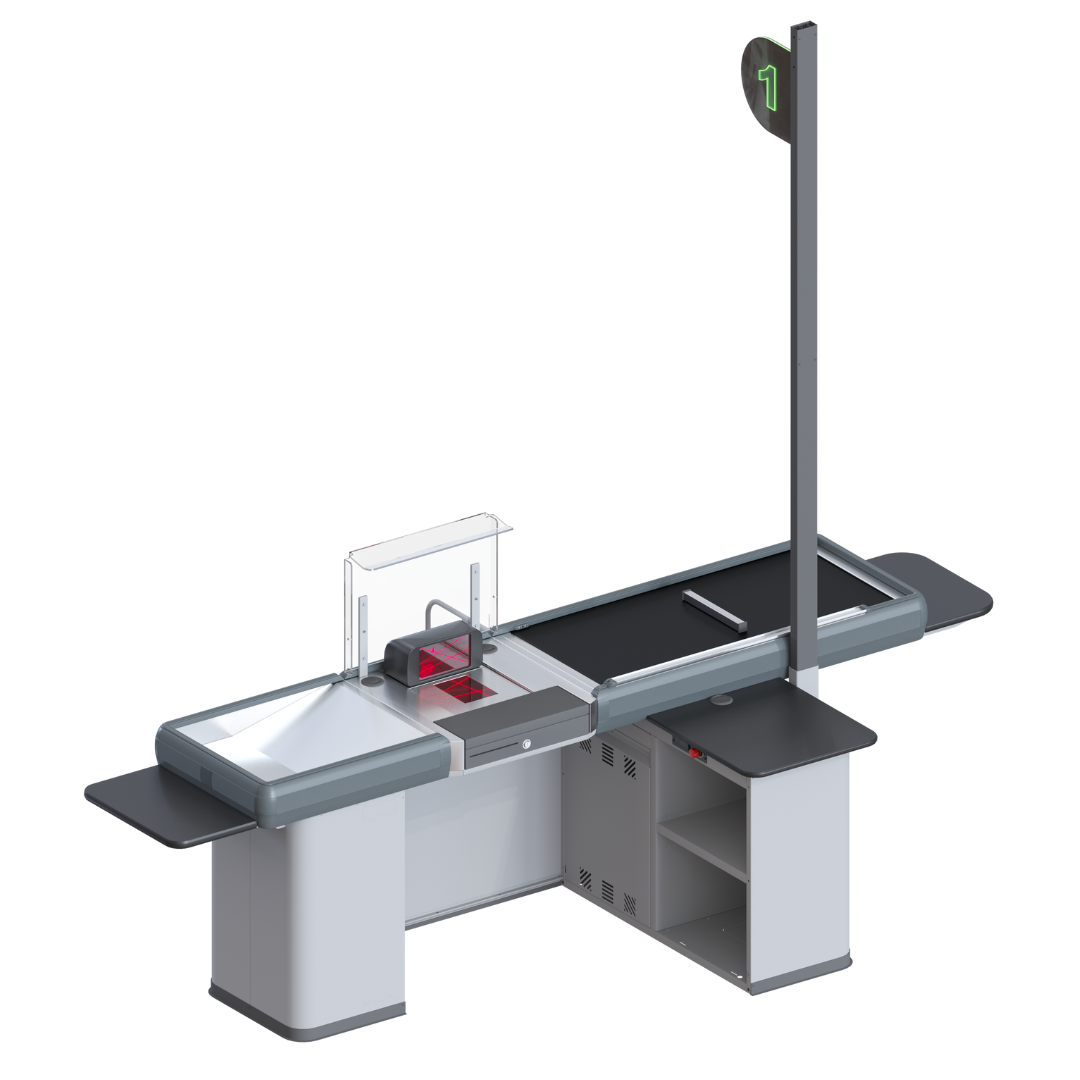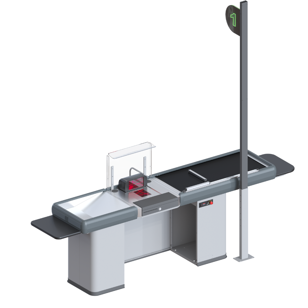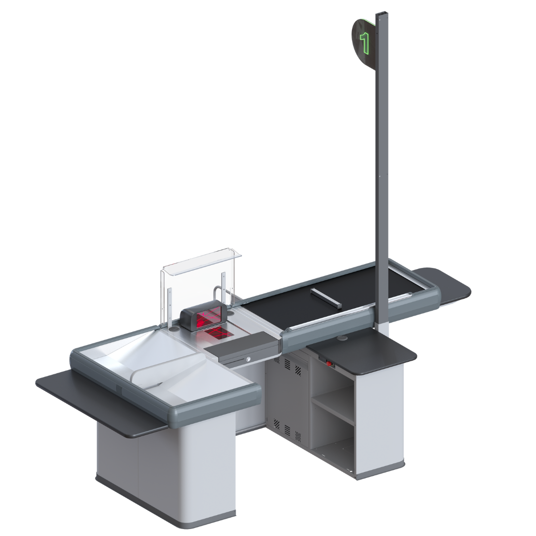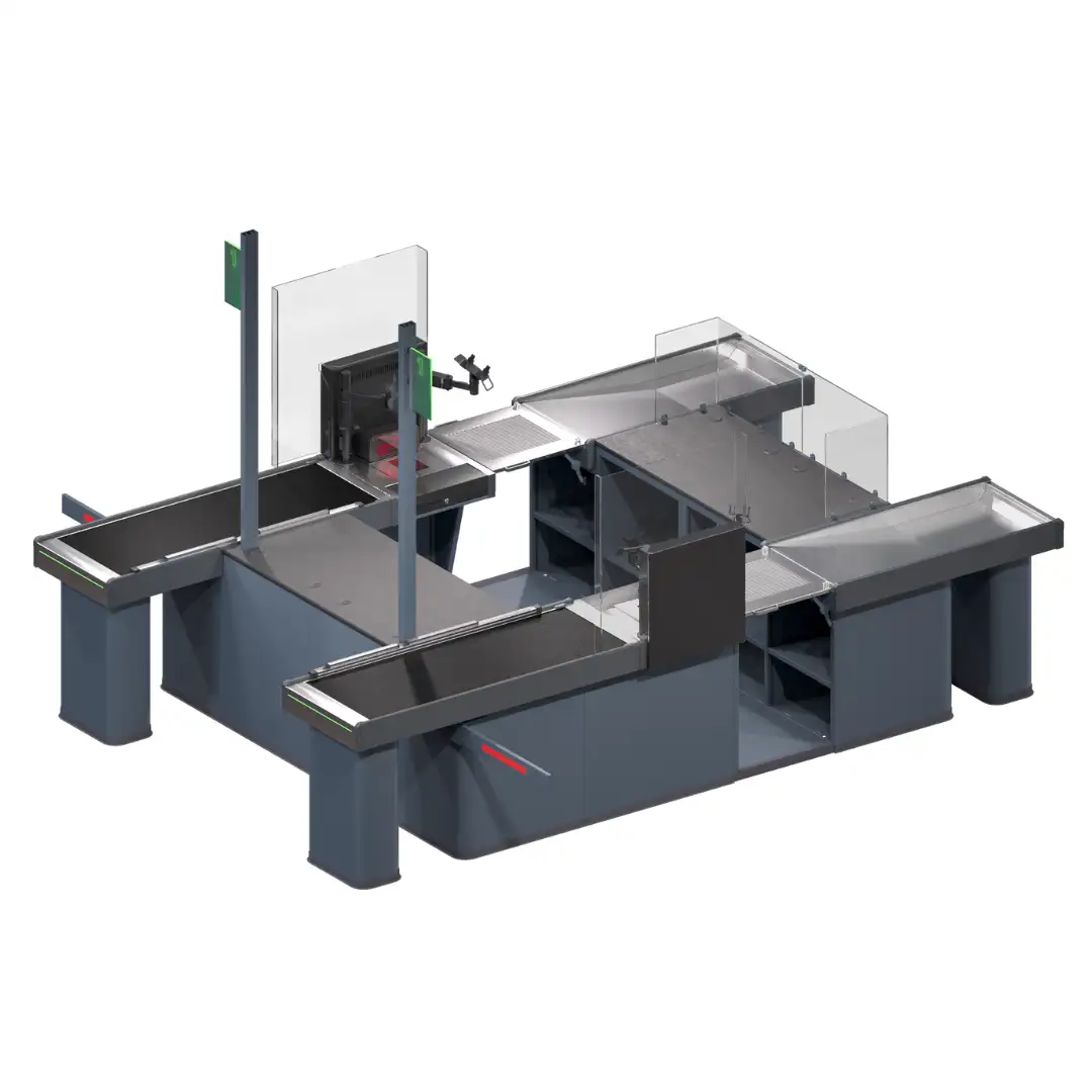 Soluție avansată pentru hipermarketuri și supermarketuri, cu design compact în tandem insular, ce optimizează spațiul în zona de casă. Performanță înaltă pentru gestionarea fluxurilor mari de clienți, asigurând viteze rapide de procesare.