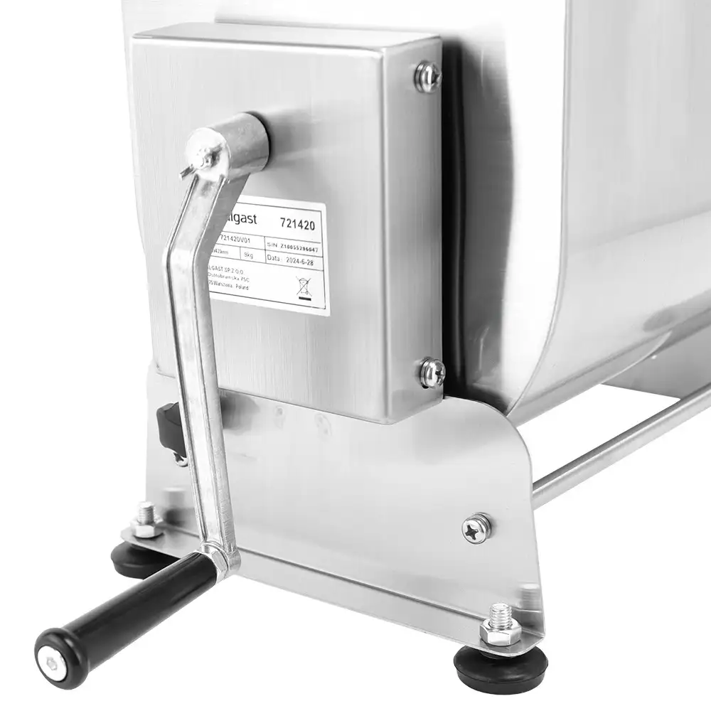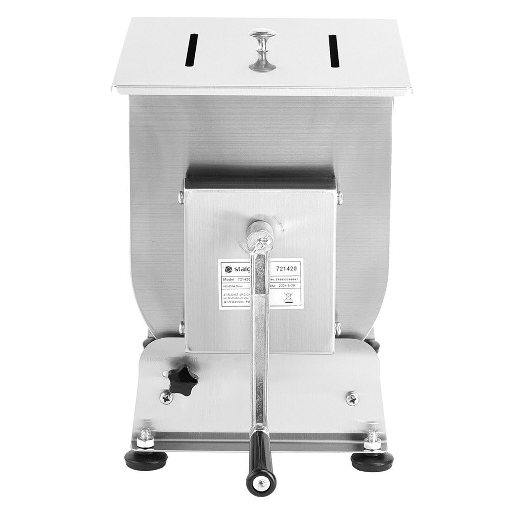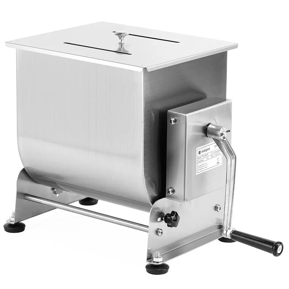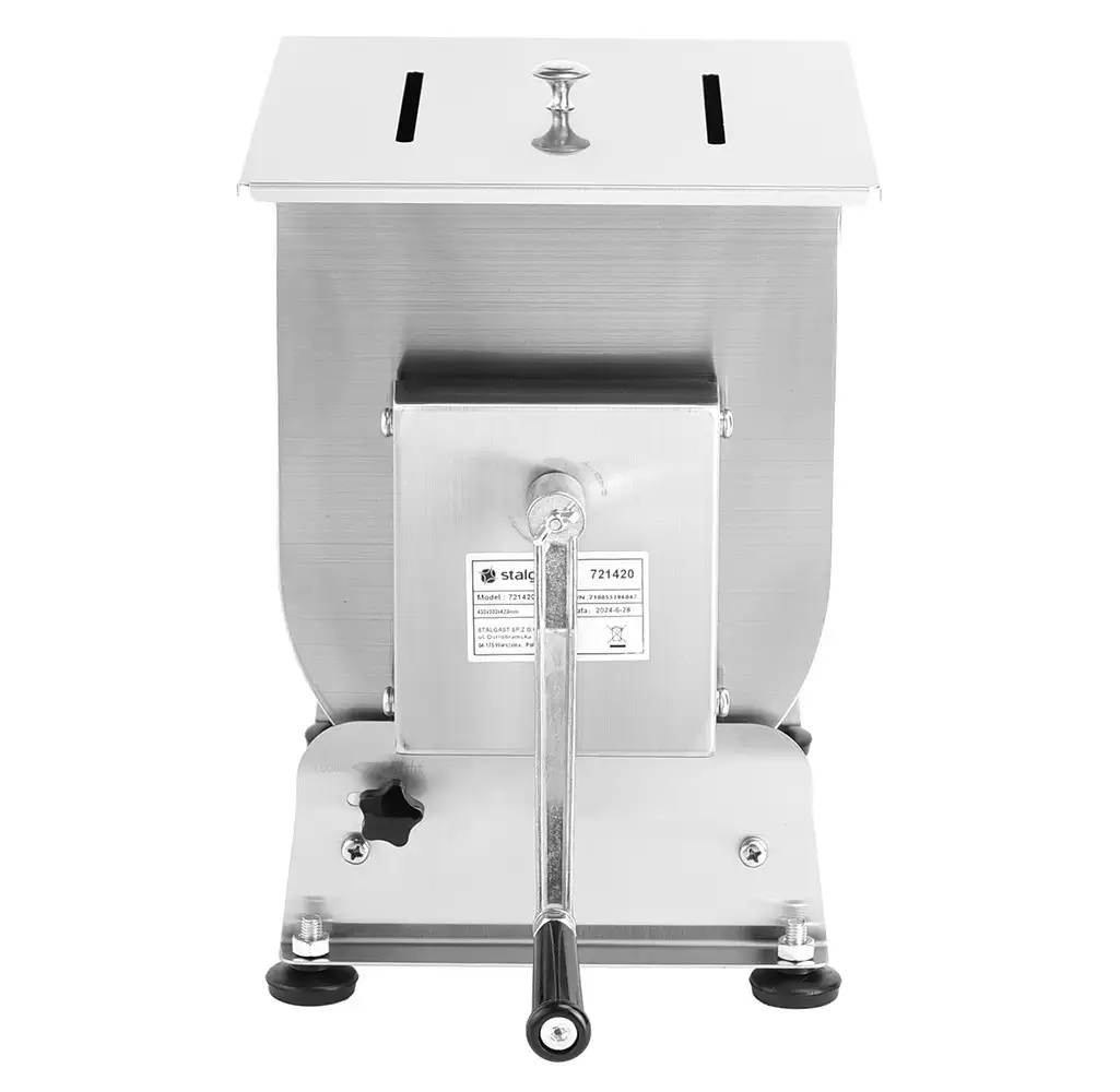 Mixer cu picioare anti-alunecare și bol basculant, oferă acces liber la conținut. Controlul complet al rotației datorită acționării manuale permite pregătirea cărnii sau a umpluturii de legume. Sarcina maximă: 6,5-7 kg. Dispune de protecție împotriva înclinării necontrolate a bolului.
