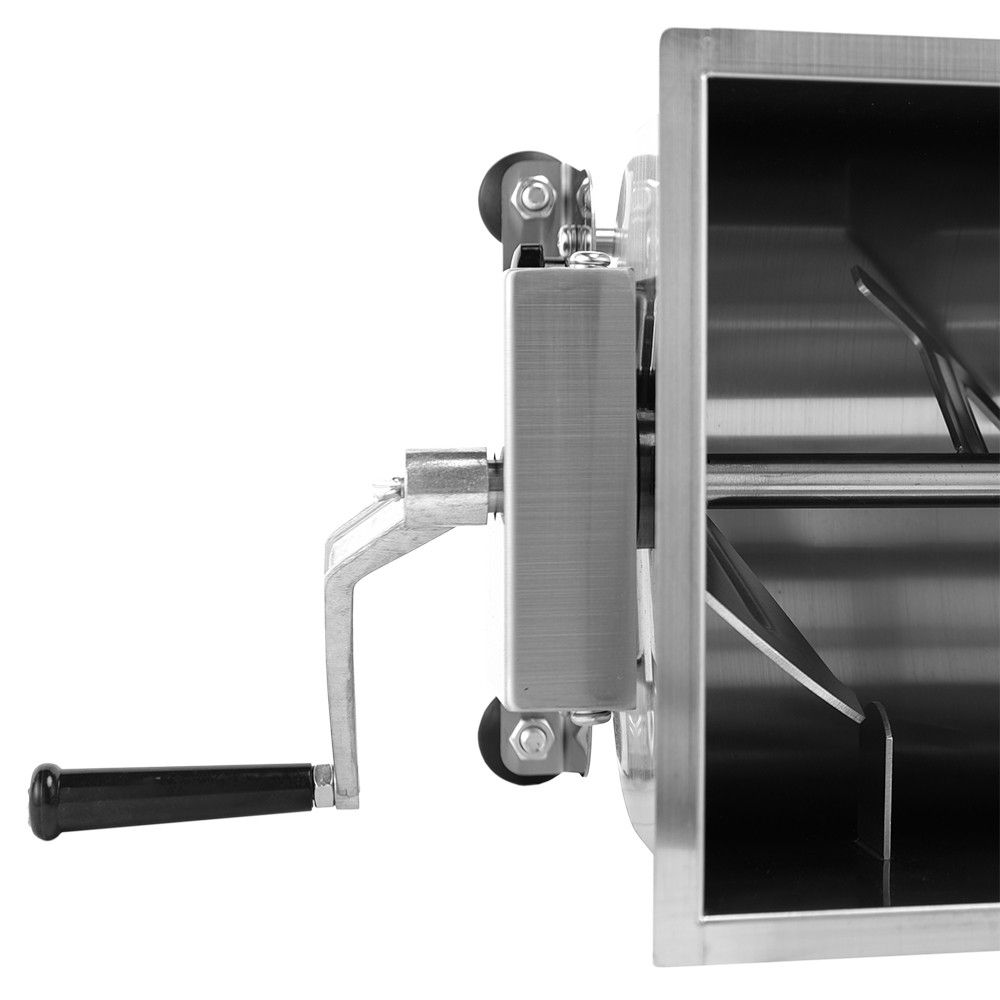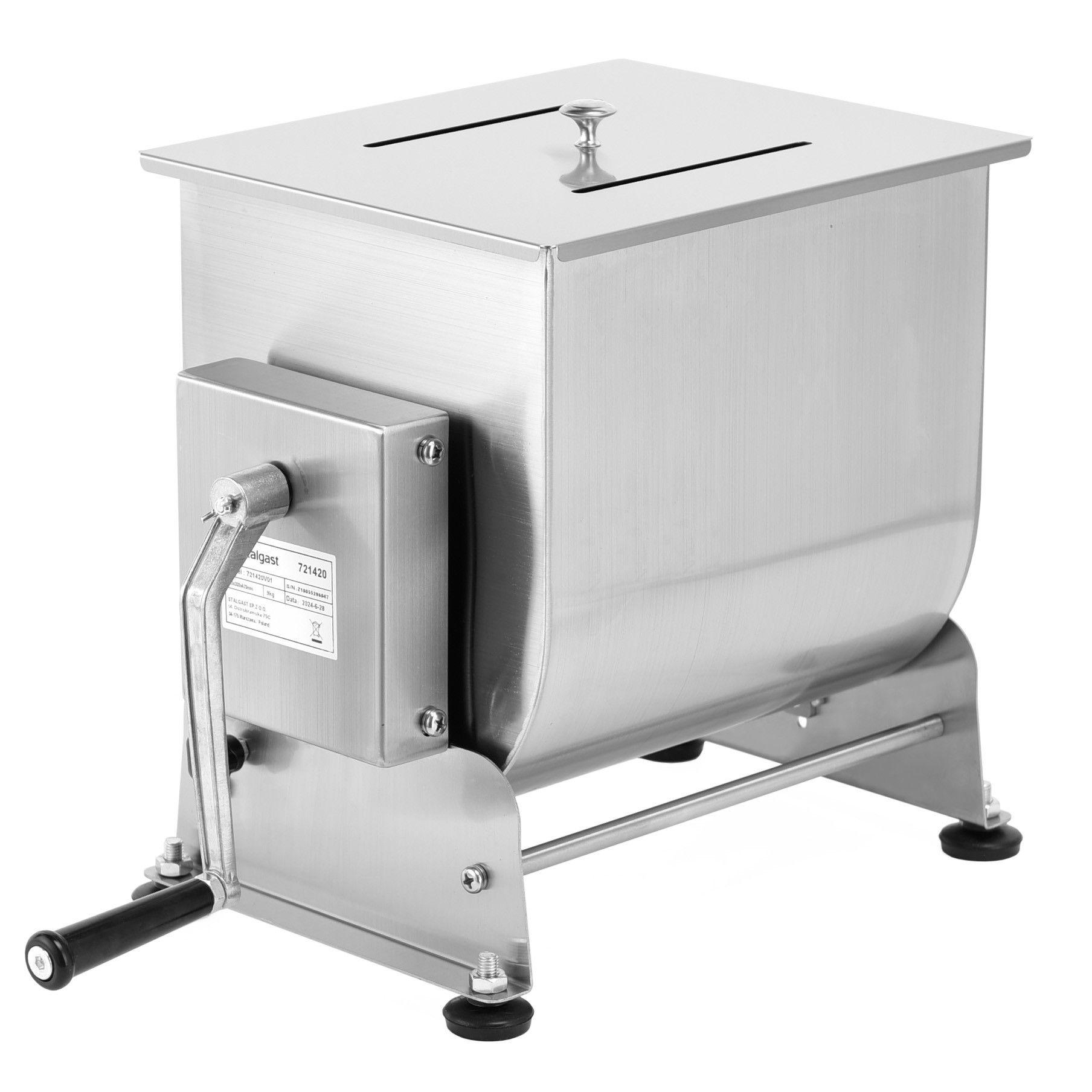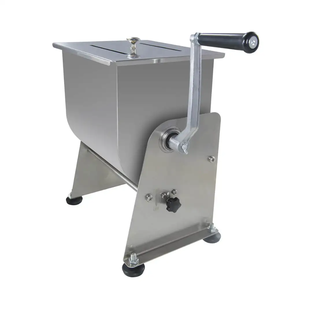 Mixer cu picioare anti-alunecare și bol basculant, oferă acces liber la conținut. Controlul complet al rotației datorită acționării manuale permite pregătirea cărnii sau a umpluturii de legume. Sarcina maximă: 6,5-7 kg. Dispune de protecție împotriva înclinării necontrolate a bolului.