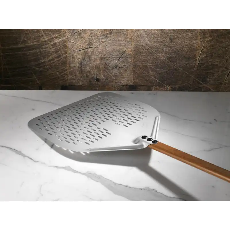 Paletă perforată dreptunghiulară pentru pizza, din aluminiu anodizat, WoodTech