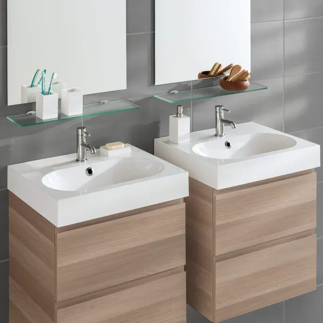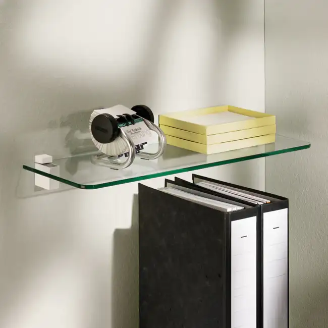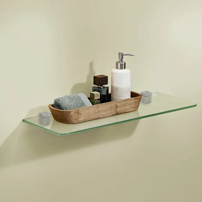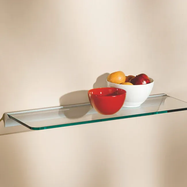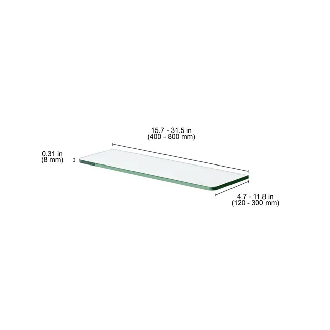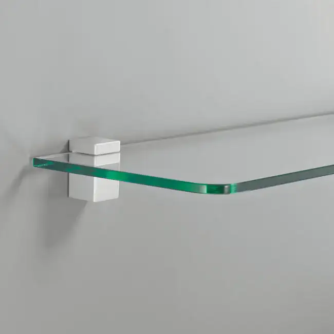 Polița standard Glassline, brand DOLLE, cu dimensiunile 420x120x8 mm, este realizată din sticlă securizată transparentă de înaltă calitate, ce oferă atât durabilitate, cât și un aspect elegant.
