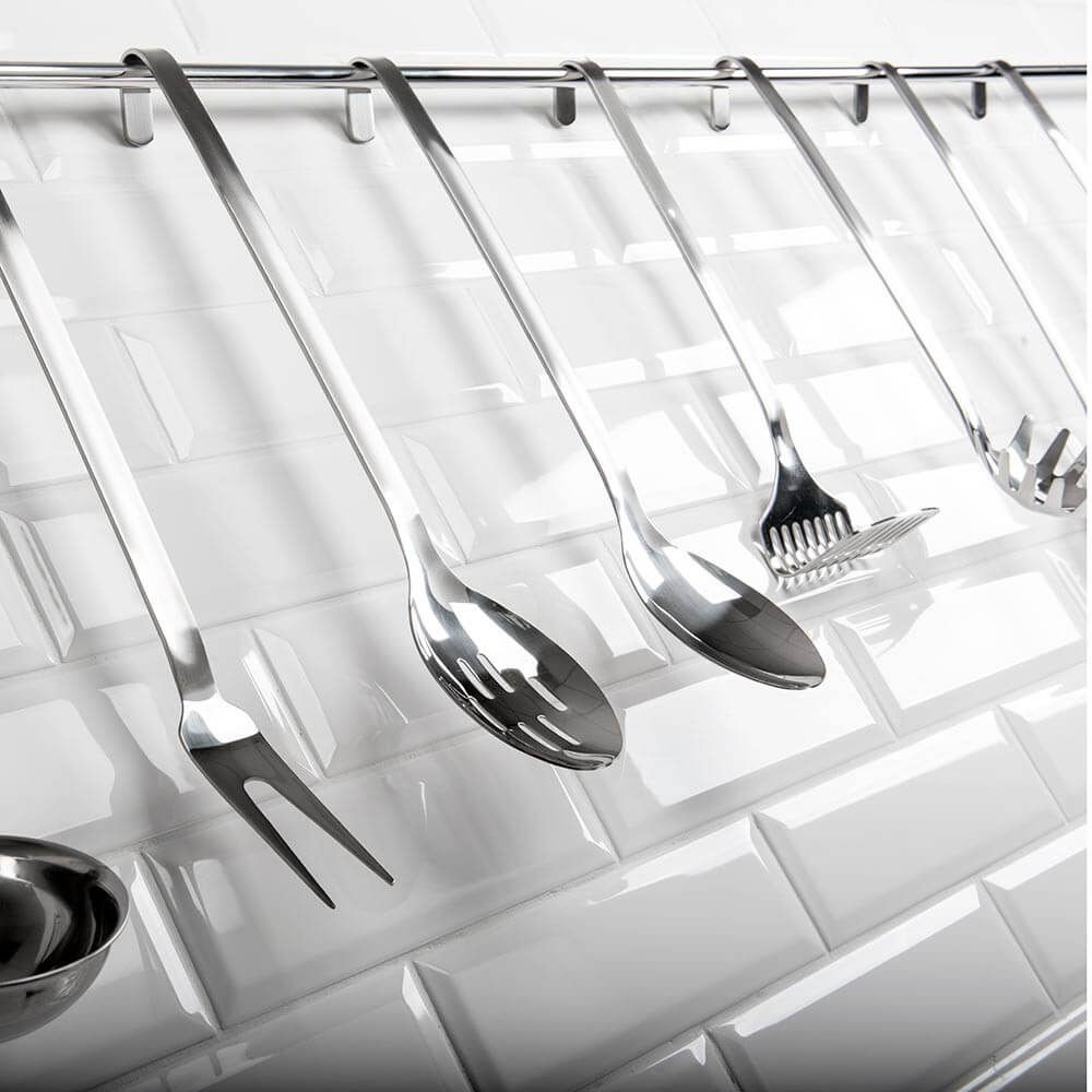 Lingură perforată MONOBLOK, cu lungimea de 400 mm. Ideală pentru scurgerea lichidelor și manipularea alimentelor în bucătărie.