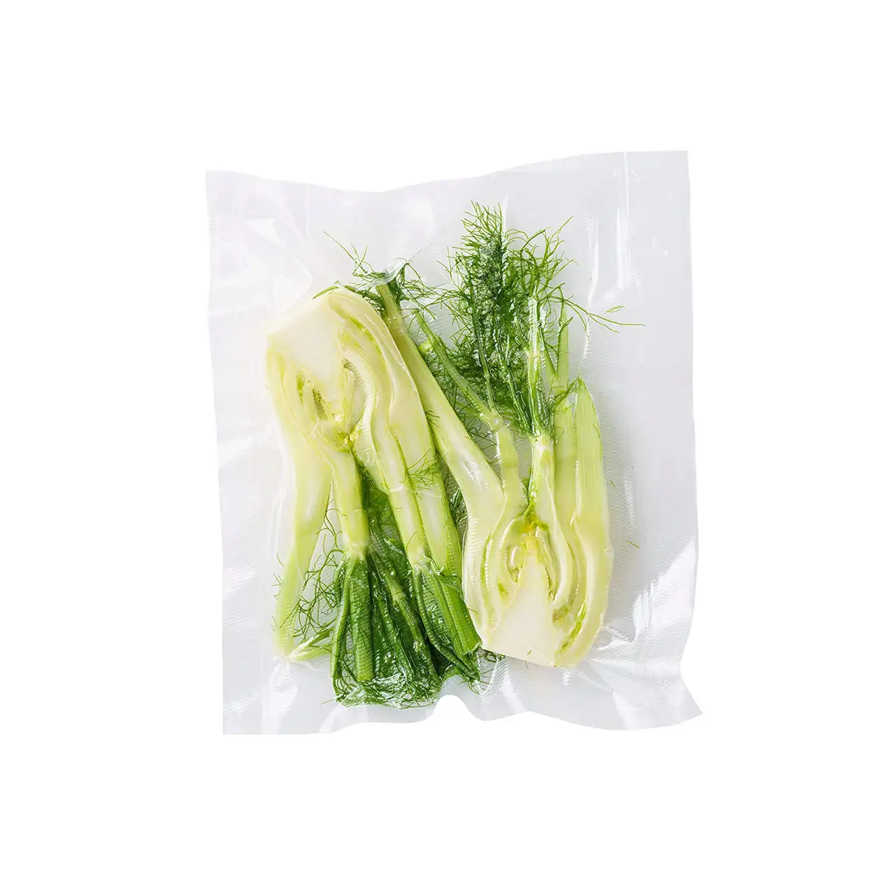 2 straturi Stratul interior este fabricat din polietilenă de grad alimentar. Strat exterior din poliamidă (nailon) – crește rezistența și garantează etanșeitatea. Grosimea totală: 65 μm.