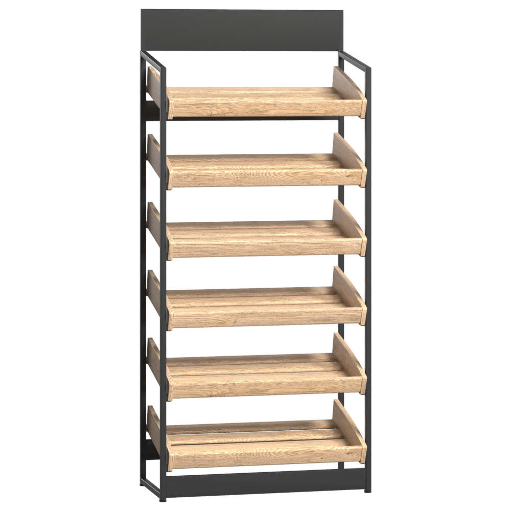 Vitrină compactă pentru produse de panificație, ideală pentru brutării, magazine mici și medii. Unitatea de perete are o construcție robustă din carcasă metalică, iar rafturile din lemn sunt perfecte pentru depozitarea și expunerea de pâine proaspătă, chifle, baghete și alte produse. Designul unității asigură organizare eficientă, acces ușor pentru clienți și un aspect modern care se integrează armonios în orice spațiu comercial.