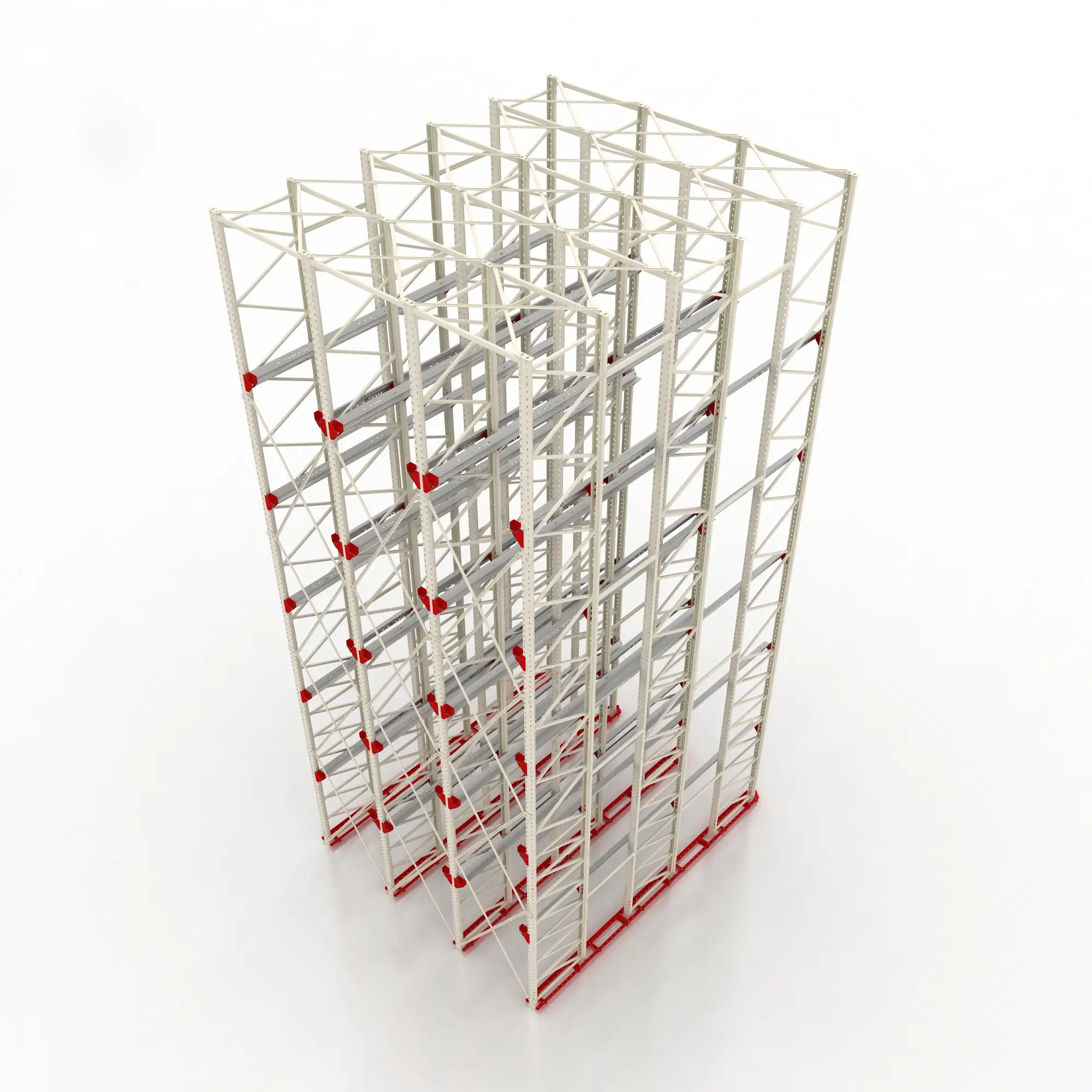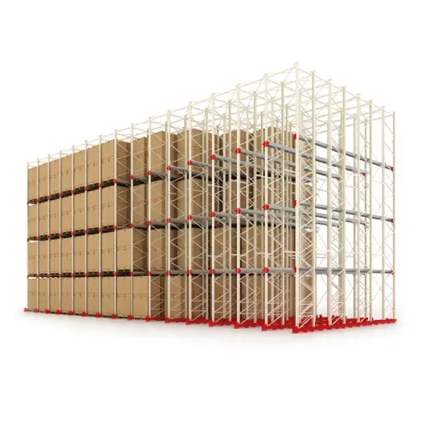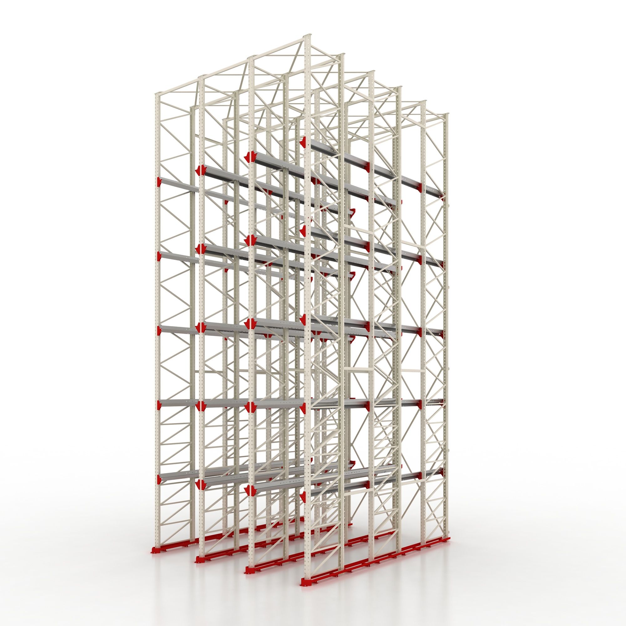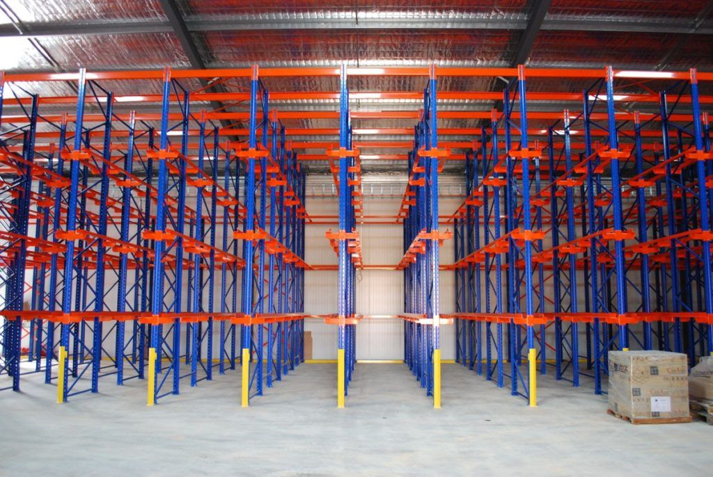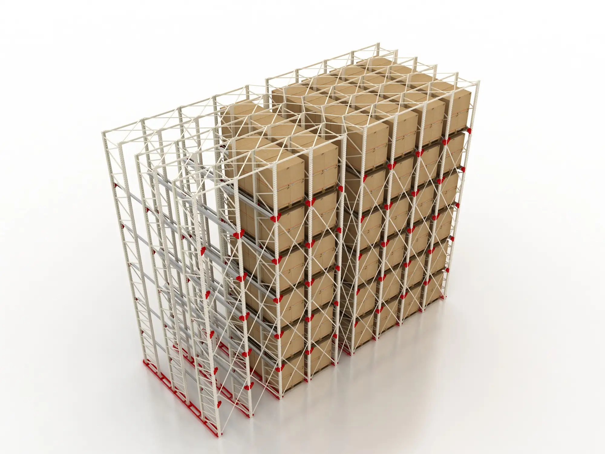 Rafturile Drive-in sunt concepute pentru depozitarea mărfurilor pe paleți compacți cu același tip de produse, cu un raport de rotație scăzut și o durată lungă de păstrare.