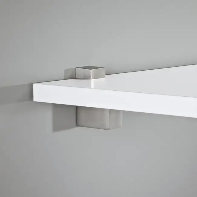 Setul de suporturi reglabile pentru rafturi, CUADRO Set 6–20 mm de la DOLLE este un sistem de prindere elegant și funcțional, ideal pentru montarea sigură și precisă a rafturilor din sticlă, lemn sau MDF, cu grosimi cuprinse între 6 și 20 mm.