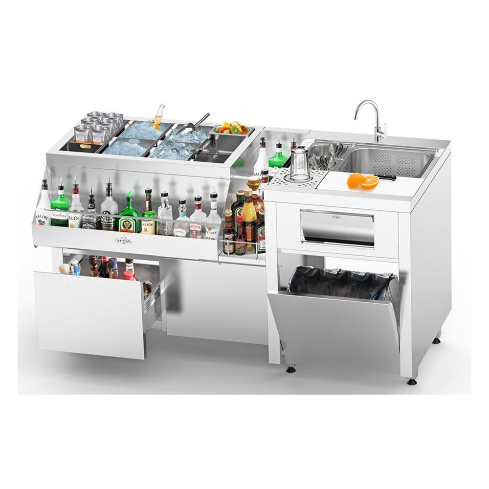Stație barman din inox BS-1.6.3,cu chiuvetă GN 1/1 și suport dublu pentru pahare 1600x700x900mm