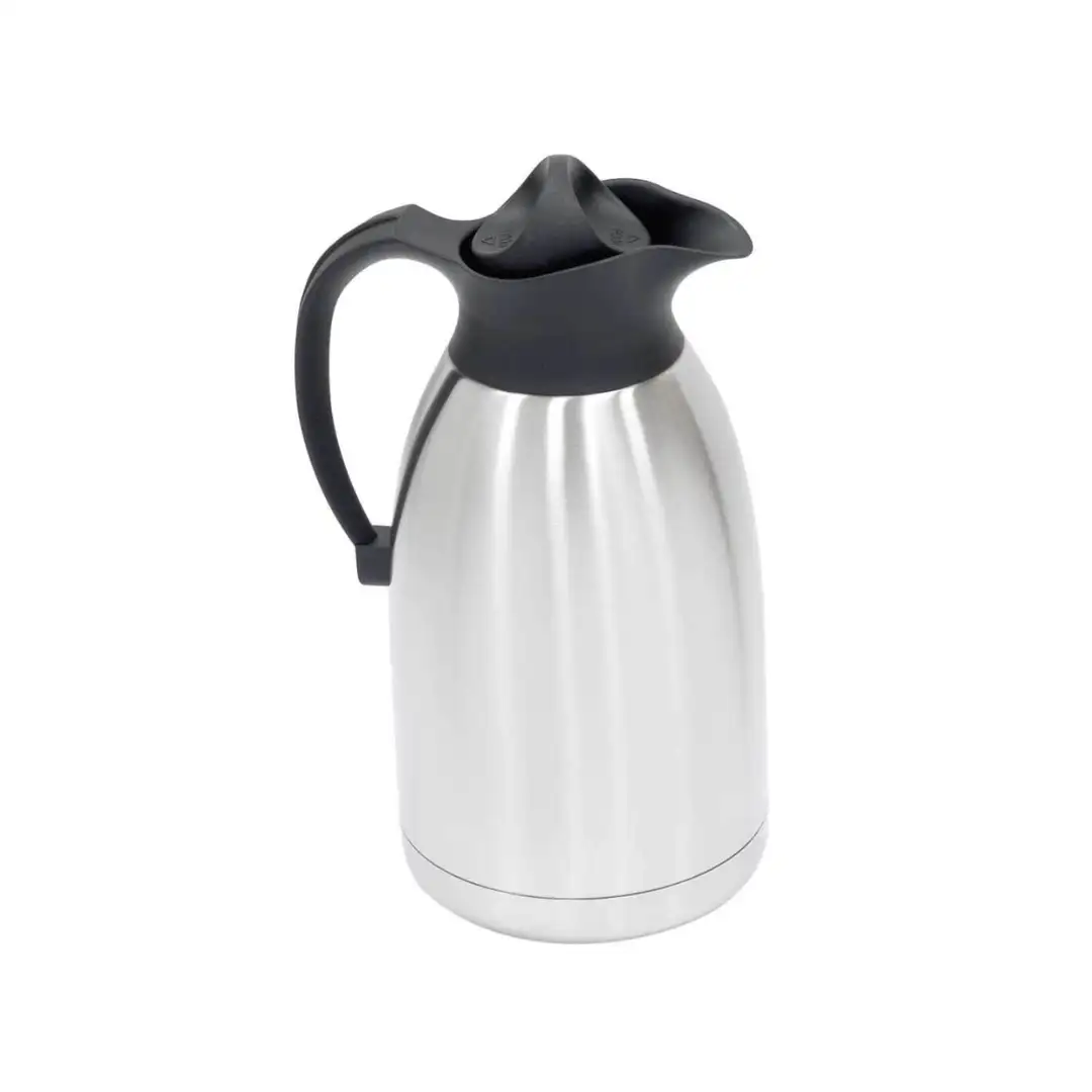 Termosul profesional cu pompă, disponibil în variantele 2,2 L și 5 L, este fabricat din oțel inoxidabil de cea mai bună calitate și are un finisaj satinat elegant.