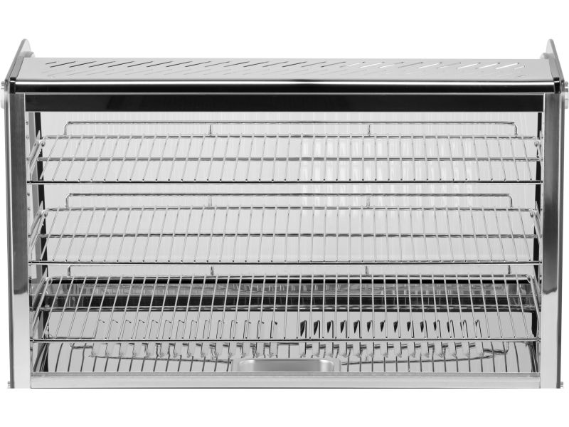 Vitrina termică de masă cu volum de 160 l este destinată menținerii preparatelor calde și expunerii acestora. Dispune de încălzire electrică și termostat reglabil, fiind potrivită pentru HoReCa.