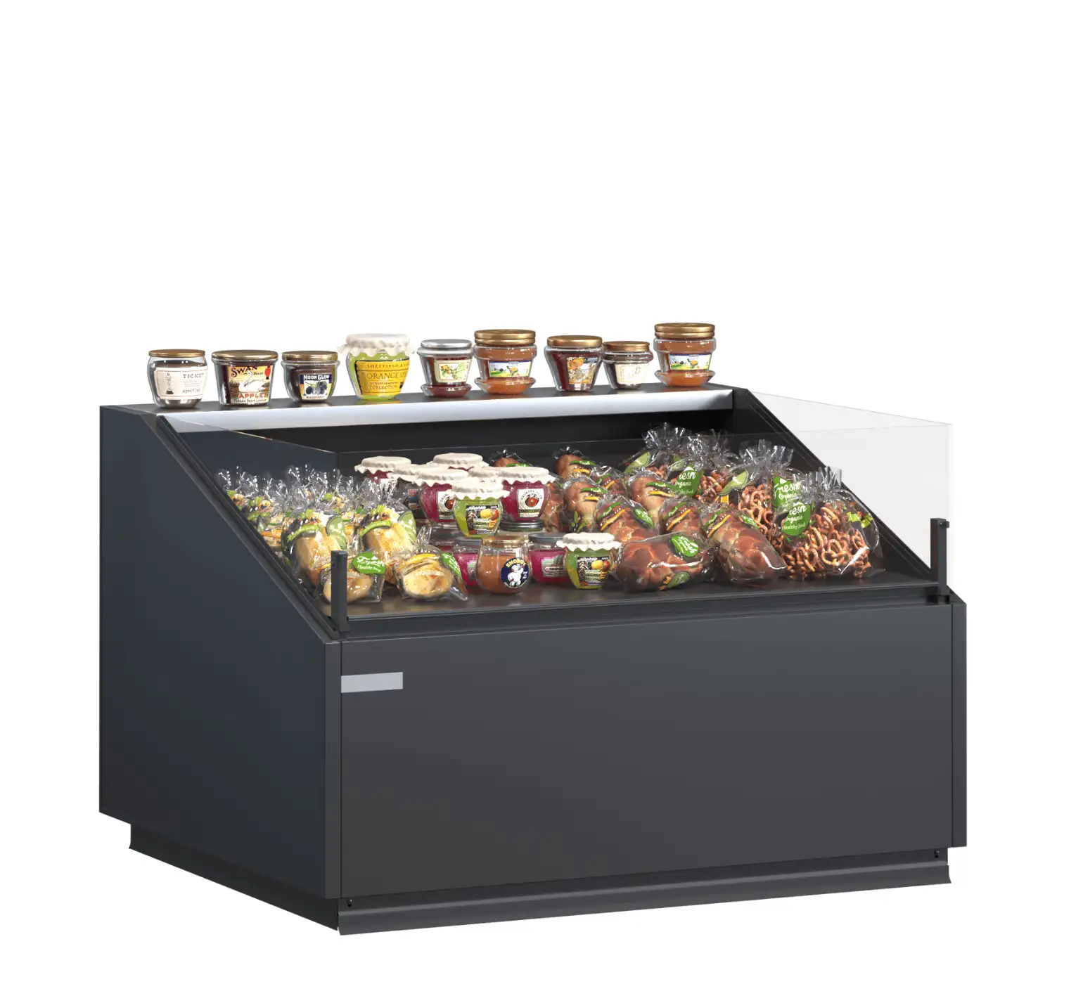Blocul de control împreună cu ventilatoarele EC moderne susțin un microclimat stabil și economisirea energiei. Iluminarea LED superioară garantează luminozitate și atractivitate pentru produsele expuse. Panourile de afișaj cu acoperire pulbere oferă durabilitate, iar pereții din sticlă spate extind vizibilitatea și accesibilitatea vizuală. Designul este perfect potrivit pentru magazine mici și puncte de vânzare.