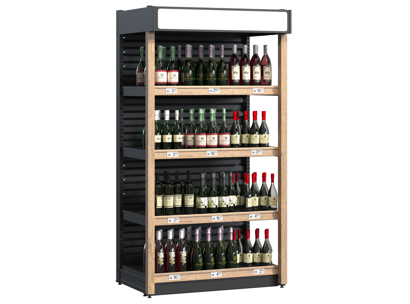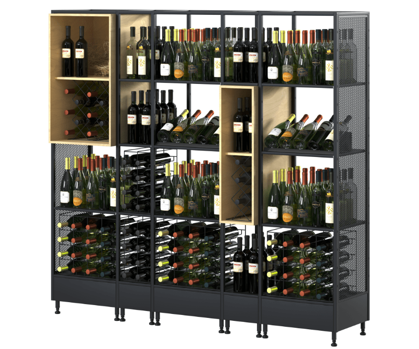 Realizate cu borduri decorative din lemn și finisaje variate, rafturile oferă un aspect sofisticat, integrându-se armonios în supermarketuri, hipermarketuri, vinoteci, restaurante, baruri, hoteluri sau chiar colecții private. Structura ergonomică le face comode pentru clienți, oferind acces rapid la produse și contribuind la o experiență de cumpărare plăcută.