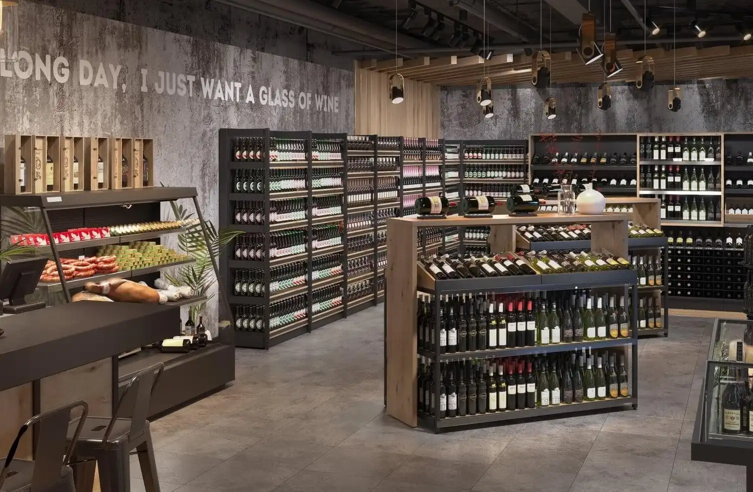 Rafturile pentru vin și băuturi alcoolice reprezintă soluții ideale pentru magazine, supermarketuri, vinoteci și spații comerciale dedicate. Structura metalică durabilă este completată de rafturi cu pereți despărțitori, unghiuri de înclinare de 60°, sârmă pentru sticle la 60° și sârmă dreaptă pentru sticle, oferind flexibilitate maximă în organizare și expunere. Vitrina de perete include pereți metalici posteriori, panouri de lemn cu rafturi pentru un aspect elegant și bară de protecție ce sporește siguranța. Configurația modulară permite prezentarea ordonată și atractivă a vinurilor, berii și altor băuturi alcoolice, transformând zona dedicată într-un spațiu premium, care îmbină eficiența cu rafinamentul și stimulează vânzările.
