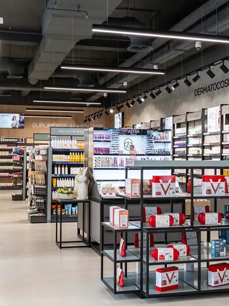 ViTRA Retail a realizat echiparea la cheie a noului spațiu DITA Hyper Farmacie din Bălți, EviMall, livrând o amenajare comercială modernă, adaptată cerințelor specifice formatului de hyper farmacie. Proiectul include rafturi specializate pentru farmacii, concepute pentru expunerea eficientă și organizarea clară a categoriilor de produse din retailul farmaceutic.